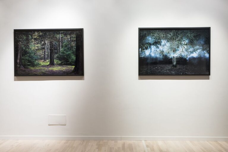 Ellie Davies (Londra, 1976) si presenta così negli spazi di Patricia Armocida, tra i navigli milanesi. File di alberi, grandi fronde, fogliami rigogliosi si aprono, di fronte al visitatore, come sipari di un teatro, sospeso tra l’astrazione intrinseca del luogo e la concretezza della vita reale. La foresta come distacco dalla dimensione urbana, la foresta come rifugio, la foresta come unica occasione di vera contemplazione. Una dimensione onirica per esplorare l’io interiore in estrema solitudine, senza inquinamenti emotivi né visivi di altro genere.