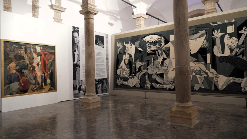 È tutto ciò che abbiamo. Tra il 1940 e il 1986 un confronto sul tema tra i due artisti evidentemente ci fu. Guttuso chiese, Picasso confermò. Stando a questa unica, scarna testimonianza – consultabile in mostra su un dispositivo digitale, insieme ad altri testi e documenti – il maestro spagnolo aveva conosciuto (se pur a distanza) l’affresco medievale. E Guttuso ne è certo: lo introiettò e lo metabolizzò a tal punto da vederlo affiorare nella sua grande opera del ’37, riconoscendovi qualcosa della ferocia contemporanea, persino del proprio stesso spirito, che in un articolo sul quotidiano L’Ora Guttuso stesso aveva definito “malinconico e drammatico (…) violento e carezzevole insieme“, eppure pronto a porsi dinanzi all’oggetto “colla freddezza del chirurgo“. Picasso geniale costruttore di immagini, capace di sentire il dramma e di tradurlo in architetture perfette, audaci, dissonanti.