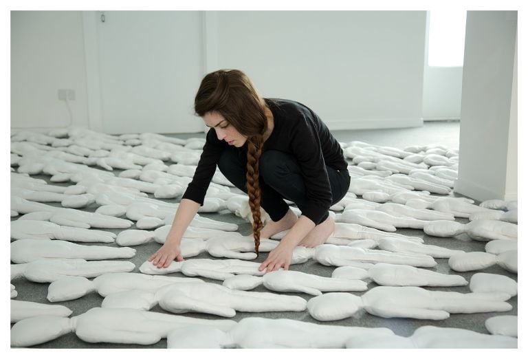 Galleria Davide Paludetto, Torino – fino al 20 maggio 2017. Duecento bambole di pezza adagiate sul pavimento, ognuna con una storia diversa e un passato che le contraddistingue impresso sul tessuto, tessono un dialogo con la tradizione.