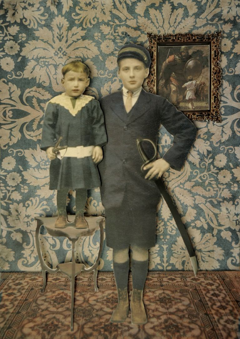 Parto sempre da progetti e sono progetti che non si esauriscono con la data della mostra, continuo ad aggiungere opere, pezzi. Il primo progetto è stato “Beatrice… una storia ritrovata” (nato nel 2005) dove, giocando con il mio cognome, fingevo ascendenze storiche come quelle dalla celebre Beatrice. Presentavo pseudo-disegni di famiglia, cartoline, ritratti, e poi ceramiche che, eseguite da un valente ceramista di Canino, Fosco Micheli, reinterpretavano i miei disegni. Mi muovevo lungo la sottile soglia che separa verosimile da vero. In Armata innocenza i riferimenti sono letterari, due libri, Les enfants terribles di Cocteau e I ragazzi della via Pal di Molnár. Anche lì tanti giochi come quelle armi surrealiste messe in mano ai fanciulli. Altra serie è i Ritratti volanti che nasce nel 2010 e, sotto forma di volatili, confeziono i ritratti di amici e conoscenti, sono collages, ma dai collage nascono disegni e ceramiche.
