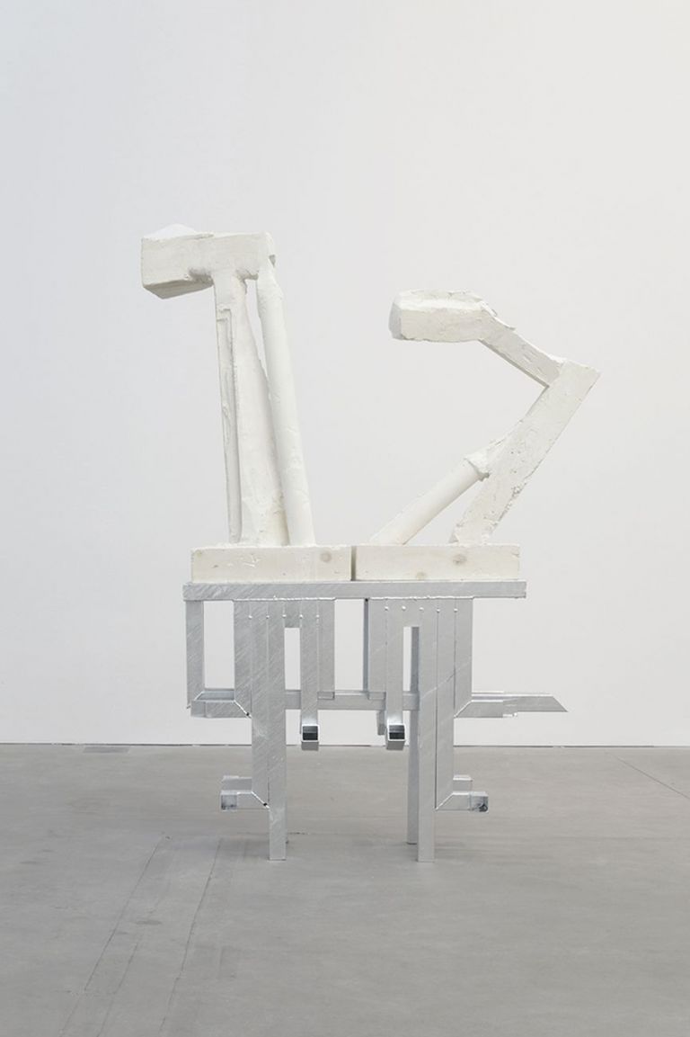 Brandelli d’acciaio saldati compongono delle strutture, di differenti dimensioni, che si librano sul pavimento del grande spazio del piano terra, “codificando” le “forze instabili”, come suggerisce lo stesso Luca Monterastelli (Forlimpopoli, 1983). Altri elementi rincorrono la verticalità delle pareti. È la grande installazione che accoglie il pubblico di questa mostra, la prima dedicata a un giovane artista italiano in questo tempio di luce della Galleria Lia Rumma. E a Luca spetta anche il merito, raro di questi tempi, di essersi messo in discussione tentando un cambio di rotta, nonostante il riscontro dei suoi cementi in collettive e fiere. Non tutti l’avrebbero fatto in quegli spazi in cui sono transitati alcuni tra i più grandi maestri del nostro tempo. I tre piani ospitano una mostra di stratificazioni, di materie e strutture, come le sculture esposte all’ultimo livello: assembramenti di gesso costituiscono nuove forme, architettoniche, che si svincolano dalla base in acciaio proponendo una relazione con l’ambiente.