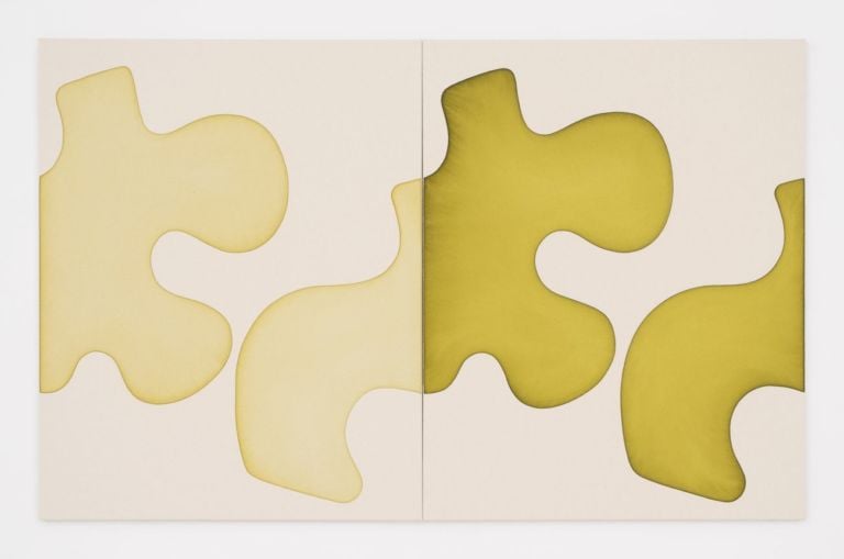 Sette tele di grandi dimensioni, forme sinuose, colori tenui: la mostra di Landon Metz da Francesca Minini a Milano, visitabile fino al 31 luglio, è una lettura aggiuntiva rispetto al lavoro del giovane artista americano.