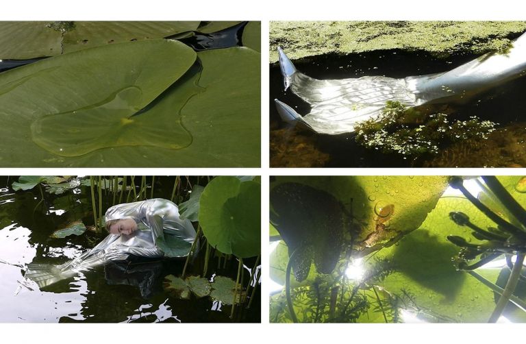 Le ninfee, scelte dall’artista per quelle capacità di comunicare chimicamente fra loro, sono le protagoniste di un suggestivo e articolato percorso installativo che mette in discussione la considerazione umana delle piante. Esseri in realtà intelligenti, abitatori di un mondo razionalmente organizzato, vengono adesso nobilitati da Inescu, che li pone al centro di un universo fisico, biologico e mitologico, fatto di profondità marine abitate da Sirene, Ninfe, Naiadi. Mondi diversi si fondono, e a turbarne l’armonia sembra essere soltanto l’umanità contemporanea. Questa suggestiva installazione diffusa guarda infatti al passato, ai miti, alla perduta simbiosi spirituale con la natura. E si percepisce, nell’eco di Joseph Paxton, la solidità dell’architettura delle piante, cui guardare nell’ottica di un nuovo umanesimo che possa ripensare la convivenza fra spazi antropici e naturali.
