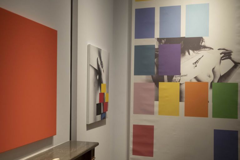 Alle pareti, pannelli di tela fotografica propongono un’ulteriore riflessione sul tema del corpo e della sua immagine: dettagli fisici femminili spuntano infatti tra quadrati monocromi, indizi di una presenza celata che mostra la parziale veridicità dell’autoritratto contemporaneo, minacciato dalla censura sociale e da una visione falsa, stereotipata e omologante dell’immagine di sé stessi.