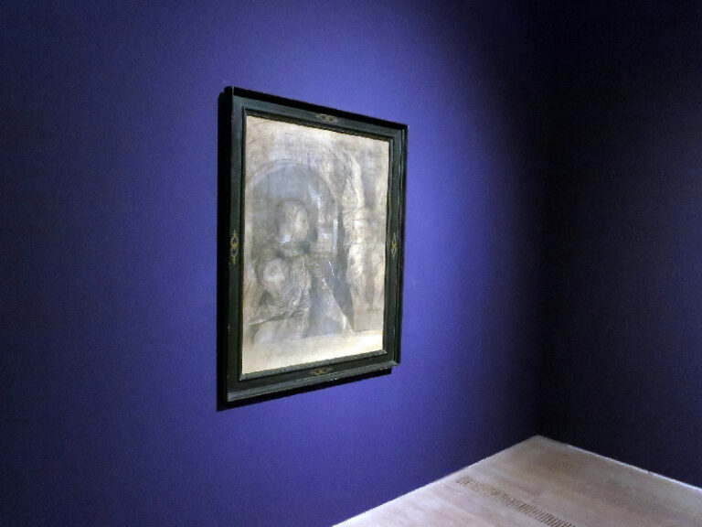 L’esposizione, fin dal suo principio, tocca con risolutezza la realtà oscura dell’immaginario di Redon, così come, con la stessa forza, si prolunga sulla sua ricorrenza a motivi floreali e ad accostamenti cromatici altisonanti. Dalla storia dell’arte alla letteratura e alla musica, passando per le filosofie e religioni occidentali e orientali, fino alle scienze naturali, la mostra è concepita secondo un ordine cronologico libero e presenta le opere raccolte secondo insiemi induttivi. Dalle litografie ai pastelli su carta, agli oli su tela, i lavori sono frutto dei prestiti provenienti dal Museum of Modern Art, dal Metropolitan Museum of Art di New York, dal Rijksmuseum di Amsterdam e dal Musée d’Orsay. La retrospettiva regala un’intensità occulta lungo la prima parte del percorso che, strutturalmente schermato dall’esterno, racchiude, nell’alveo di pareti dai colori mistici, i noir giovanili di Redon, in una continua emancipazione di ombre e sogni metamorfici, trasformati in dialoghi visuali con l’indicibilità dell’inconscio.