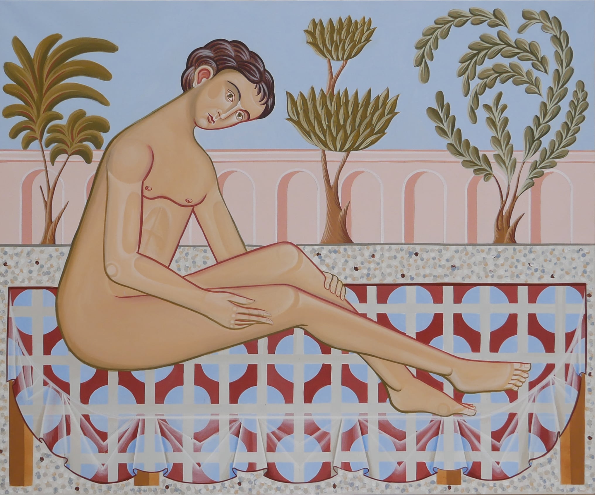 Quella di Nones può essere definita una deformazione parentale: l’affezione per la figurazione bizantina è da ricondurre all’attività iconografica del padre. Si comprende altrettanto bene l’interesse di Tommaso Calabro nella sua pratica pittorica, così memore di una certa figurazione novecentesca dedita alla pulizia dei tratti e alla sospensione del pathos così come del movimento. È il caso di artisti come Fabrizio Clerici, Stanislao Lepri, René Magritte, Giorgio De Chirico o Alekos Fassianos, ovvero l’asse surreal-classicista della scuderia di Calabro che in più occasioni abbiamo avuto modo di apprezzare. Difficile non sentire – nelle opere di Ismaele e quindi nella scelta del gallerista di esporlo – l’eco di questi maestri e maestre.