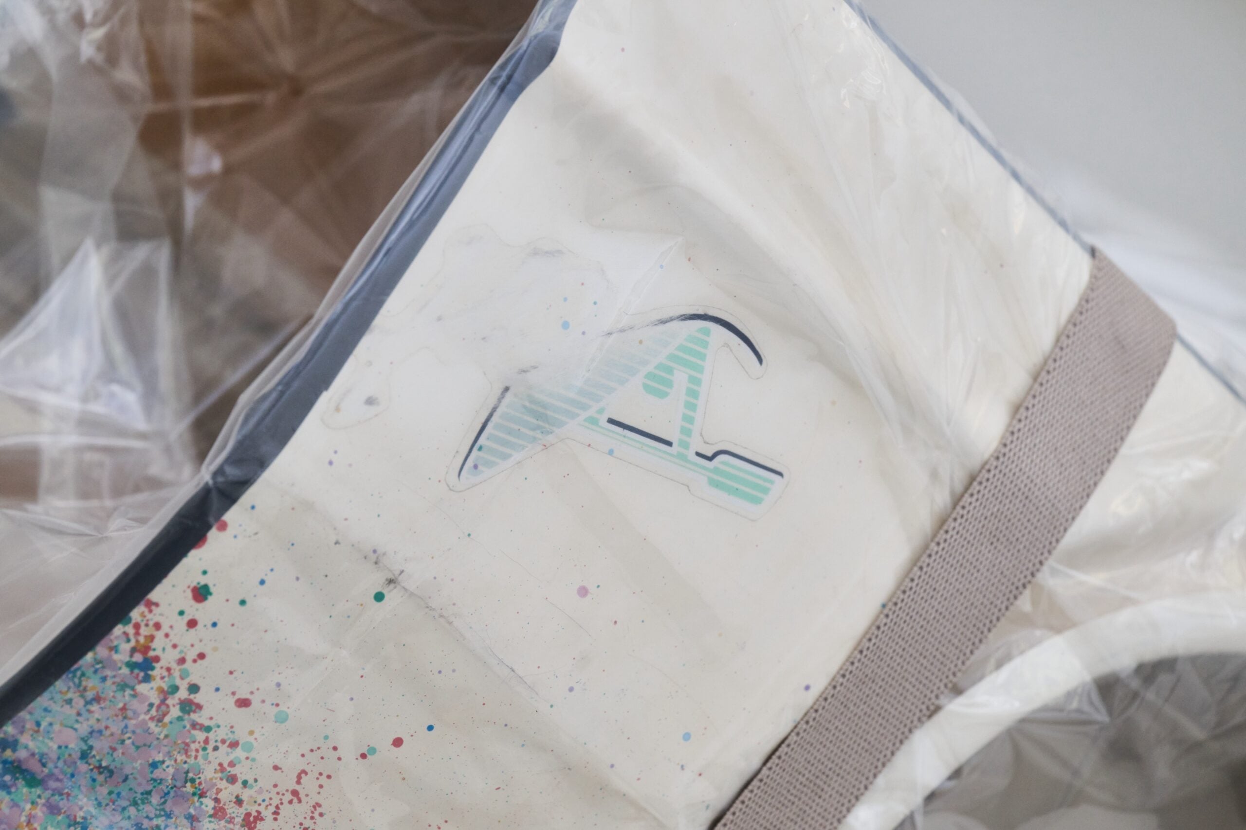 I’m here, but not entirely yours: il neon azzurro installato all’ingresso, colore che richiama il mondo digital corporate, fa da monito ambivalente. Salite le scale, la tensione tra partecipazione e ritiro si rinnova nell’installazione sonora che diffonde ogni 20 minuti, (lo stesso ritmo delle micro-pause prescritte dalla psicologia del lavoro) una frase tratta dal film Vieni avanti cretino del 1983 interpretato da Lino Banfi: “Your satisfaction is our best reward!”. Sospeso sulle scale, un grande Kayak sottovuoto, a simbolizzare una passione per il tempo personale in natura. Nei vari uffici sono disposte le teche monocromatiche, prodotte dalla società Vitrik, di vetro switchable che si oscura all’avvicinarsi dello spettatore, lo stesso usato per garantire privacy in molti uffici e sale riunioni.