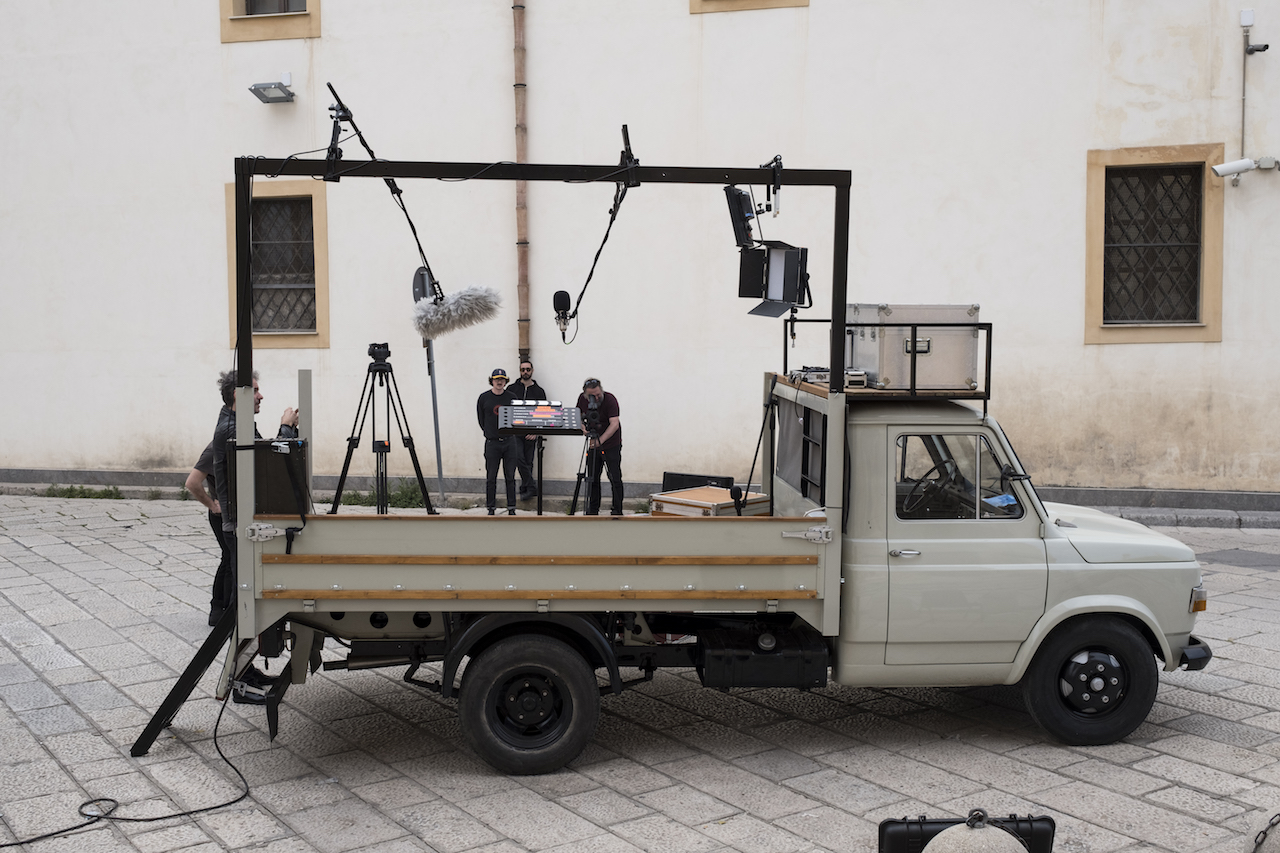 Infine c’è Looping. “Durante la notte del 25 maggio 2018”, raccontano i Masbedo, “abbiamo viaggiato per le strade di Palermo, proiettando alcune scene tratte dal film La Sicilia del Gattopardo di Ugo Gregoretti”. Successivamente hanno parcheggiato nel bellissimo Orto Botanico, una jungla di radici e ramificazioni sempre in movimento, trasformando il truck in cinema. Qui è poi stata proiettata in loop una sequenza commovente del film Salvatore Giuliano di Francesco Rosi. Ma sono tanti gli interventi pensati dai Masbedo per la loro presenza a Palermo, alcuni, in mostra all’interno del truck, altri in divenire: a luglio ci sarà una performance dove si mostrerà per la prima volta in Italia la pellicola, ritrovata da Cassavetes, Terra di Nessuno, di Mario Baffico (1939), mentre per il finissage gli artisti stanno lavorando sulla costruzione di un progetto su soggetto inedito, di cui Artribune racconterà più avanti.