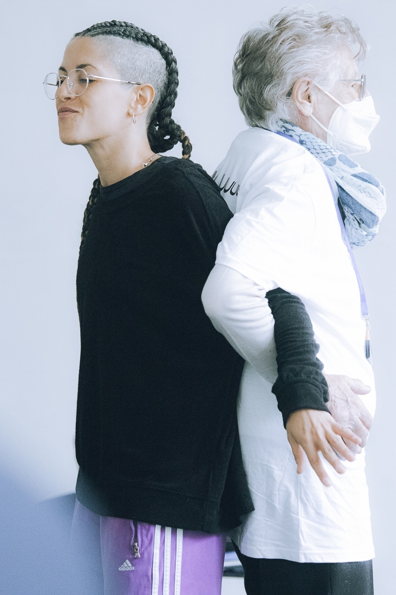 Nonostante qualche piccolissima caduta di stile, il festival ha comunque dimostrato di sapersi rialzare in fretta, offrendo iniziative e progetti di qualità particolarmente attenti alla sfera del sociale e, più propriamente, al coinvolgimento degli abitanti dello stesso territorio. Fra questi non si possono non menzionare la proiezione di Stato di Grazia (l’opera video di Francesca Cola che si è avvalsa della collaborazione con l’associazione di promozione sociale Oltre le Quinte per tramutare concretamente il concetto di disabilità in una risorsa) e il laboratorio di movimento – ad alto tasso di empatia – che l’artista performer Irene Russolillo (Cerignola, 1982) ha condotto all’interno dello Spazio Nòva insieme a un gruppo di arzilli ospiti della Casa di Giorno per Anziani Don Aldo Mercoli. Proprio Russolillo è stata inoltre invitata a confrontarsi con l’ex Chiesa di Sant’Agostino per mettere in scena Dov’è più profondo, uno spettacolo stratificato fatto di coreografie evocative, tappeti sonori a cura del producer verbanese Edoardo Sansonne e canti che fondono la tradizione valser con il dialetto cerignolano. Una performance scandita da più atti, tenuti insieme da un filo conduttore che scala vette altissime per raccontare della natura lenitiva del cantare: una pratica necessaria per poter sopravvivere all’impervia condizione del lavoro tra i monti.