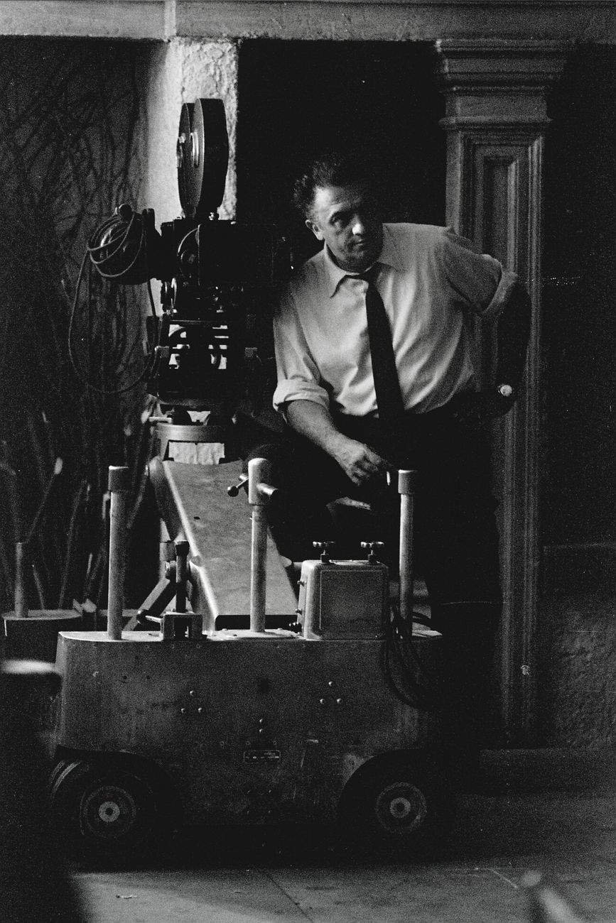 Federico Fellini, Paolo Villaggio in La voce della luna, 1990. Collezione Vincenzo Mollica