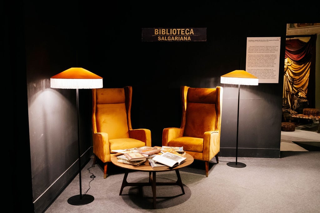 È centrale: trasforma la visita in racconto. Il pubblico entra nell’esperienza attraverso i sensi. Il suono del ramsinga, nei romanzi carico di presagio, si ascolta senza fonte visibile e insieme si osserva come oggetto, tra gli strumenti donati a Umberto I dal raja Sourindro Mohun Tagore. Il suono si estende in un paesaggio più ampio — mare, scafi, foresta, ruggiti — costruendo una narrazione continua. A questo si affianca uno spazio raccolto, la biblioteca, dove la lettura di brani del ciclo indo-malese riporta tutto alla parola scritta.