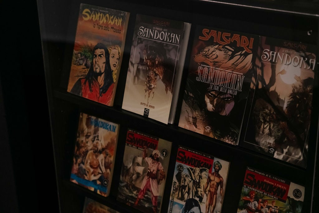 Senza dubbio la fisicità del personaggio, sempre eccezionale e declinata secondo sensibilità diverse: dalla figura idealizzata primo-novecentesca a una corporeità più concreta nelle rappresentazioni televisive, da Kabir Bedi a Can Yaman. In questo equilibrio tra continuità e riscrittura, tra reale e ideale, tra storia e finzione, la mostra restituisce Sandokan come mito ancora attivo. Allo stesso tempo, i curatori riportano l’attenzione sul valore letterario originario e su Emilio Salgari: in soli cinquant’anni di vita, con oltre ottanta romanzi e centinaia di racconti, seppe appassionare e formare intere generazioni.