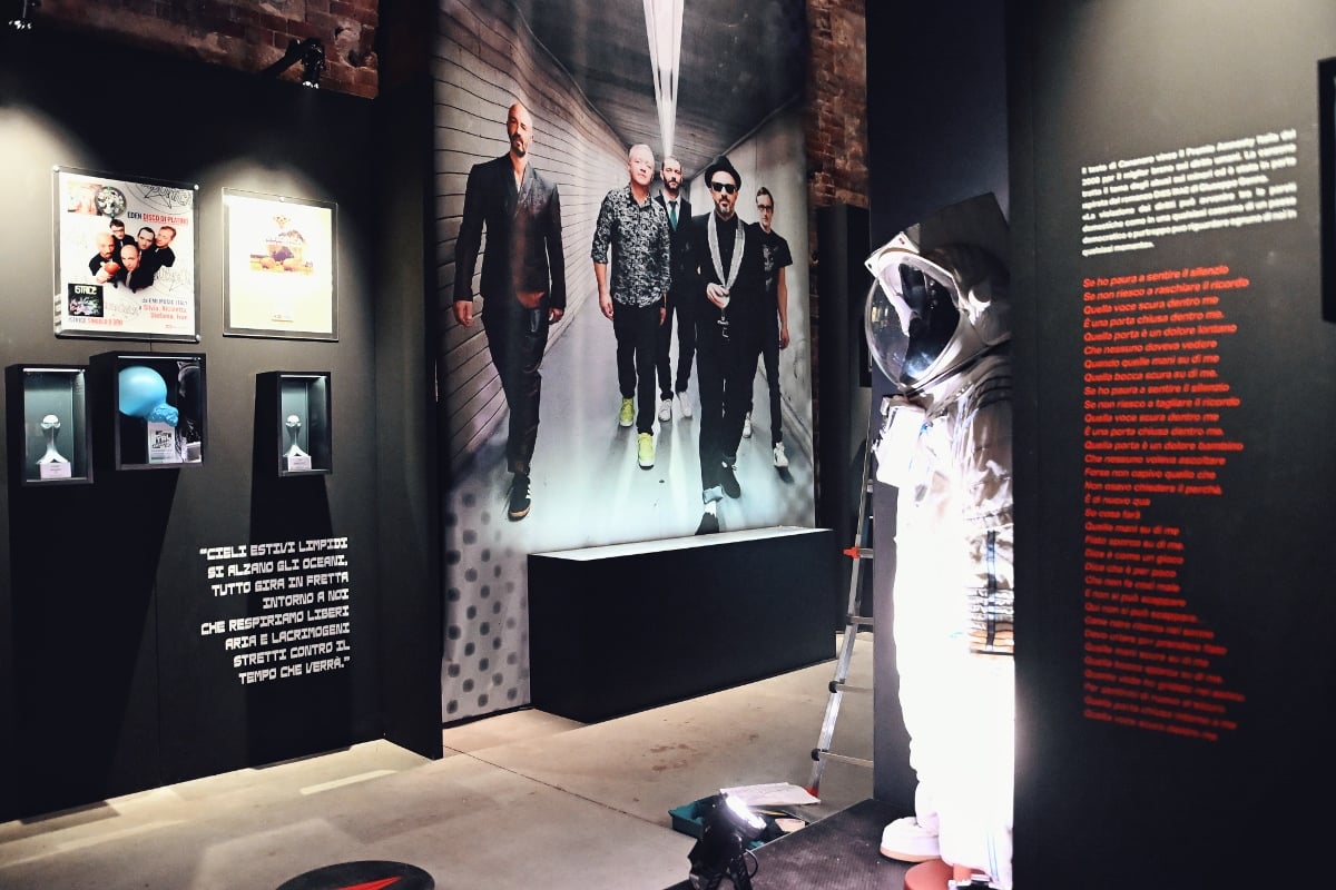 Si chiama, invece, Rientro in Atmosfera la mostra allestita fino al 12 aprile nel Duomo delle OGR Torino e curata dall’agenzia torinese Consiste Entertainment e interamente dedicata alla storia e al percorso artistico e umano del gruppo formato da Max Casacci, Samuel, Boosta, Vicio e Ninja con foto, memorabilia, costumi di scena, strumenti e apparecchiature dei primi album, manifesti e tanto altro. “La mostra è nata quasi da un’immagine, o meglio da una frase molto precisa: ‘vorrei una discoteca labirinto bianca, senza luci colorate’”, ci spiegano le due curatrici Enrica Pesca e Chiara Miranda. “È stato uno spunto molto forte, quasi un’indicazione spaziale e mentale, da cui abbiamo iniziato a costruire tutto il progetto. Da lì è emersa subito l’idea del tunnel e di un percorso espositivo che non fosse lineare, ma labirintico, capace di far entrare il visitatore dentro l’universo dei Subsonica in maniera immersiva e stratificata. Fin dall’inizio ci interessava evitare una mostra puramente celebrativa o cronologica. L’idea era piuttosto quella di costruire un racconto davvero “subsonico”, che restituisse sia il loro lato più avanguardistico e sperimentale, sia il rapporto profondissimo con Torino e con il contesto urbano e culturale in cui sono nati. Il confronto con loro è stato importante, perché ha permesso di costruire una mostra che non fosse semplicemente “su” di loro ma “con” loro, cercando di restituire non solo una storia musicale, ma un immaginario, un’attitudine e un modo di stare dentro il proprio tempo”.
