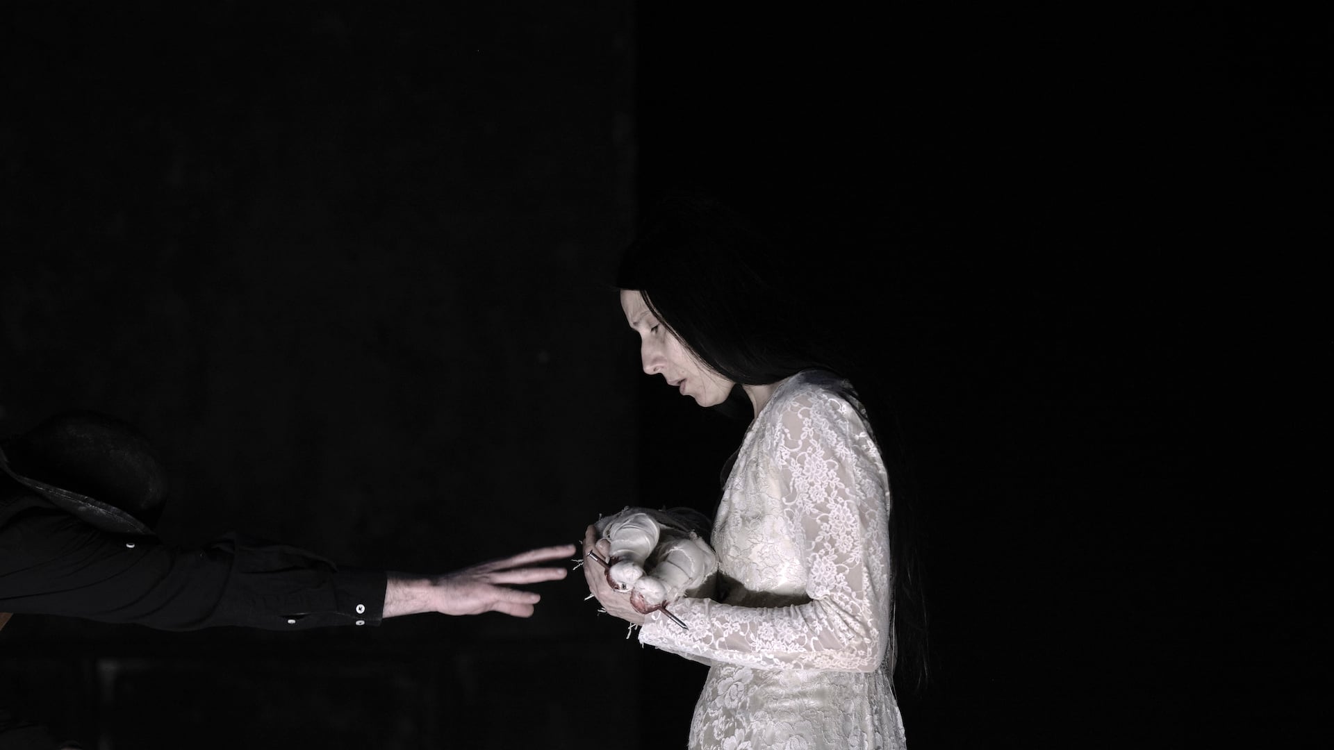 Alessandro Serra è autore di una sorta di teatro “totale” in cui nulla è lasciato al caso e ogni aspetto della messa in scena – movimenti, suoni, luci, costumi, scene e oggetti – concorre a immettere concreta realtà nell’idea registica. Una cura frutto di indiscusso e visionario talento nel comporre sul palcoscenico atemporali tableaux vivants, paesaggi umani di onirica e suggestiva pregnanza. Immagini che, in questo caso, rimandano alla pittura fiamminga ma pure alle tele in grigio/nero di Rothko e, ancora, a certe fotografie di famiglia in bianco e nero di inizio Novecento, Ma, poi, c’è anche la maschera orientaleggiante di Teseo e ci sono i veri e propri lazzi dei servi di casa. Ispirazioni eclettiche che convergono in un quadro coeso che concorre al succitato, programmatico straniamento. Una poetica della scena che non genera pathos né concede la consolazione di un’ormai impossibile catarsi bensì si rivolge con fredda – ma non distaccata – lucidità al pubblico, accendendone il pensiero più che le emozioni, la riflessione esistenzial-filosofica più che le passioni.