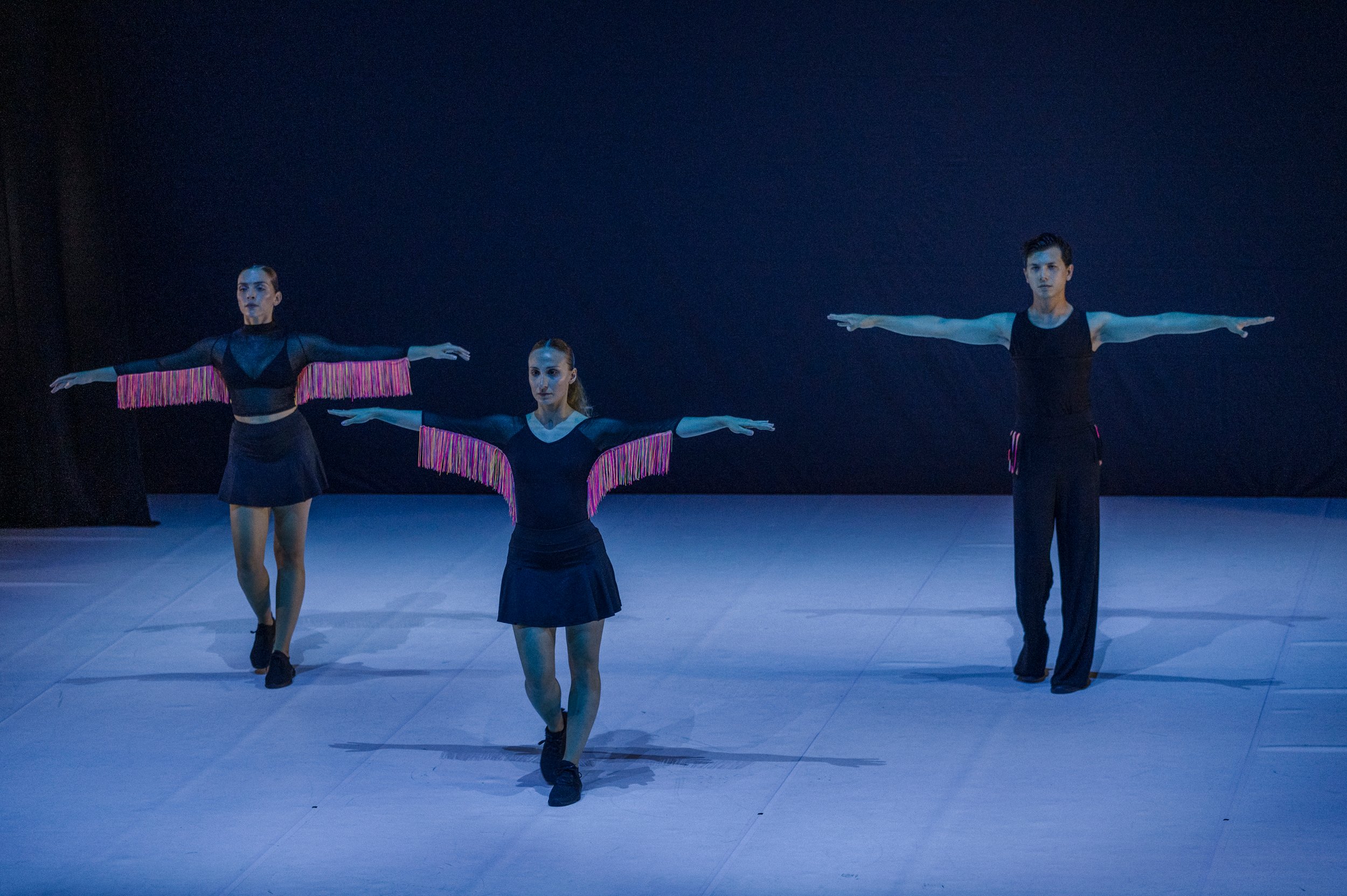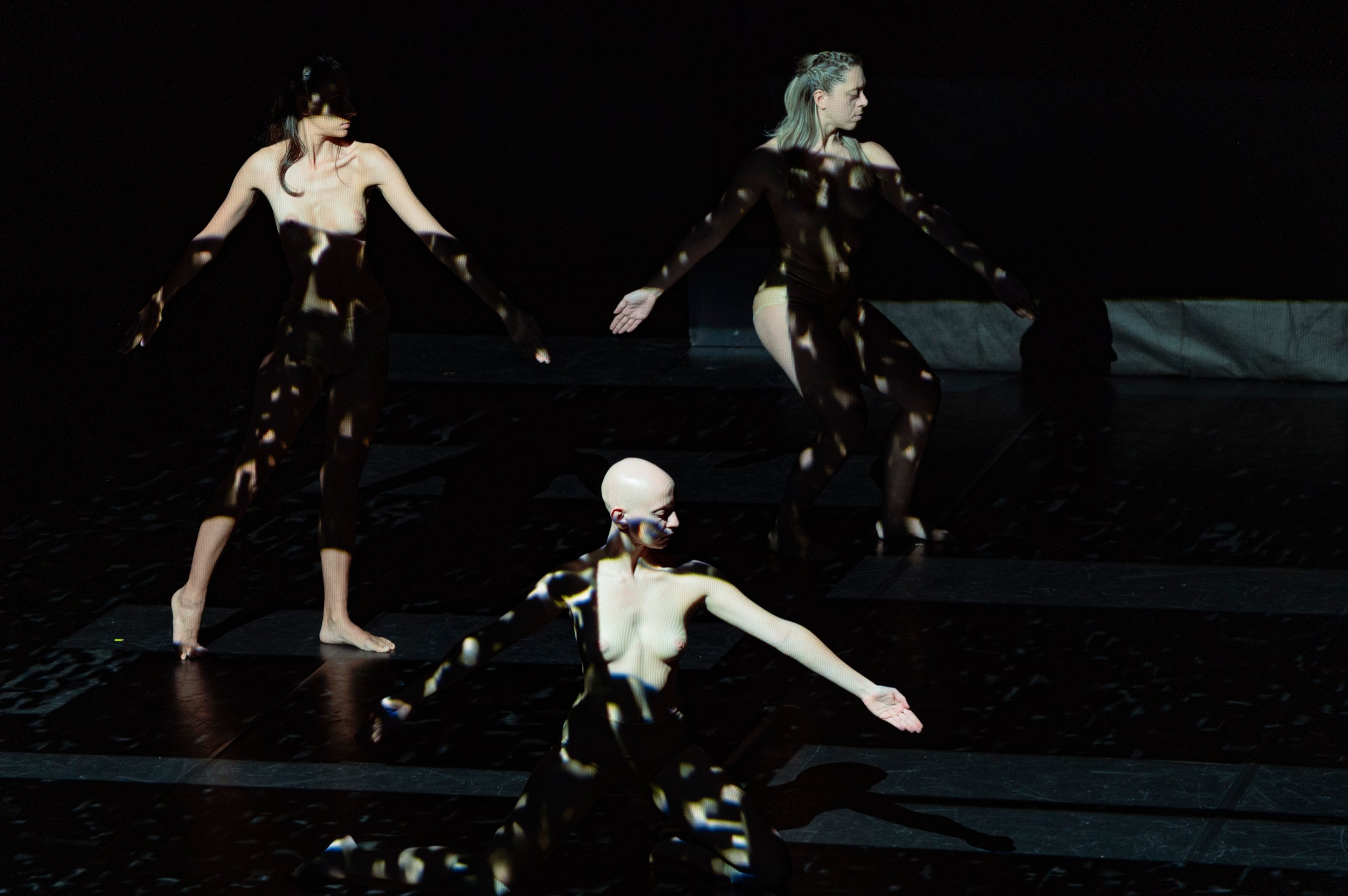 Alla storia della danza, quale arte in rapporto con i balli popolari, guarda Laura Gazzani nel raffinato lavoro Graziosissimo, terzetto dove evoca la figura del grande maestro Enrico Cecchetti tra ports de bras classici e infuocate folk dance in una ricchezza di citazioni dal repertorio che solo gli occhi più attenti e colti riescono a cogliere. Ispirato ai social media e allo scrolling è l’accattivante performance Good Vibes Only (beta test) di Francesca Santamaria che riflette con gustosa ironia sul consumo coreutico-musicale attraverso un compendio fisico e sonoro che spazia dalle hits pop di Annalisa a quelle di Mahmood. Richiama, invece, il mito di Iside e la cultura rappresentativa dell’antico Egitto, il primo studio di SEX.EXE di Pablo Ezequiel Rizzo/Voluptas, terzetto fluido che esplora le identità tra proiezioni digitali e l’immanenza dei corpi. Arguto per la costruzione coreografica e per l’ingegno delle luci è Coraggio. La sfortuna non esiste di Vidavè Company, tandem creativo composto da Matteo Vignali e Noemi Dalla Vecchia che, partendo dalla comune radice hip hop, sonda vari scenari espressivi con grande estro.
