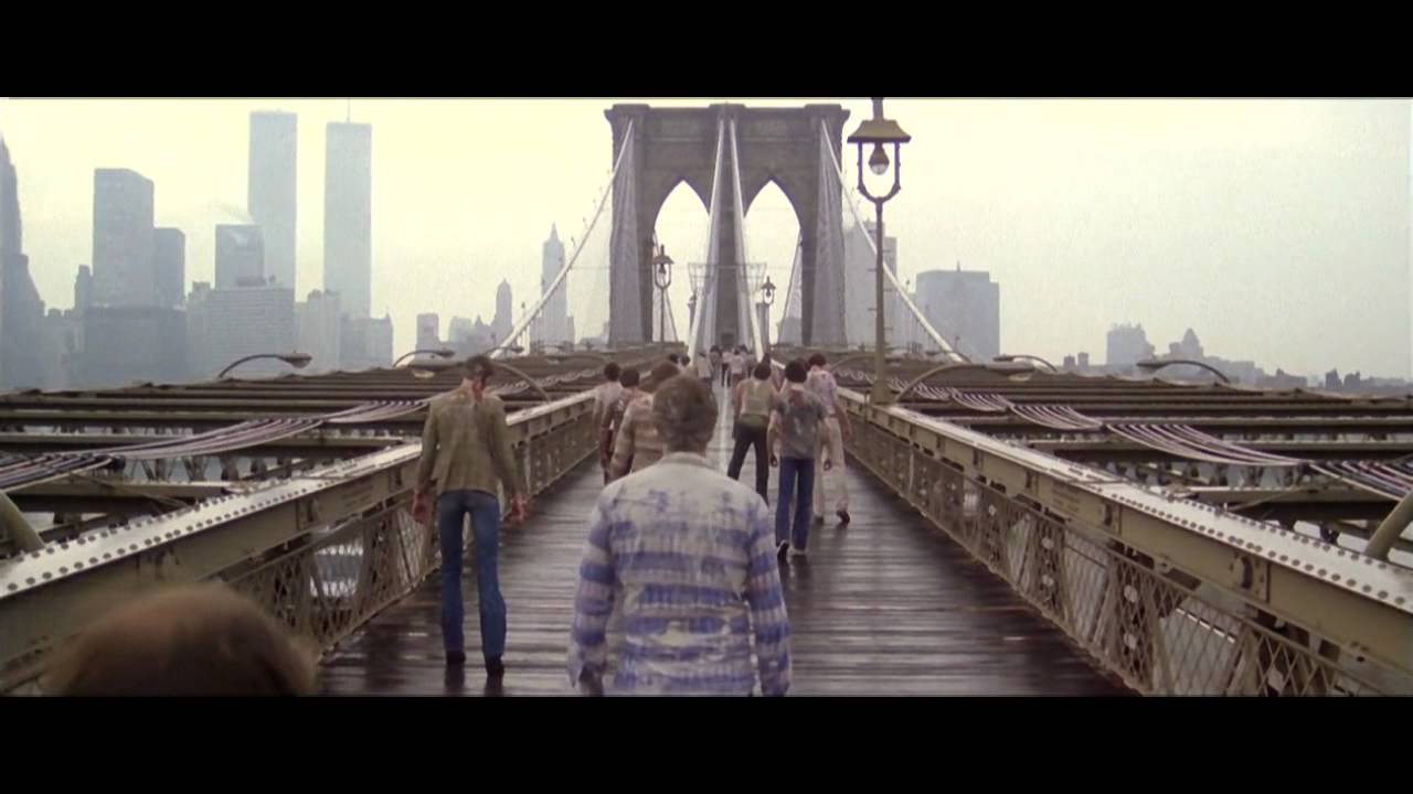 In treno da Foggia a Bari, 26 aprile. E in effetti, l’immagine evocata (sottotraccia; estenuata) dai ragazzi nerissimi in cammino ogni giorno sul cavalcavia all’ingresso di Taranto è quella di Zombi 2 (Lucio Fulci, 1979), con i morti viventi sul ponte di Brooklyn come una moltitudine di immigrati haitiani indesiderati. A suo modo una profezia, e una scena che ho sempre trovato molto naturale, spontanea, serena. Un’immagine del futuro sostanzialmente utopica, di una “serena apocalisse” (allegria di naufragi) – così come profetica e serena è la luce che sempre immerge questa scena (con protagonisti ogni volta diversi, ragazzi e ragazze, da soli o in gruppo) – nel sole del tramonto o del mattino presto – nella polvere rossa tossica che colora gli edifici a due passi.