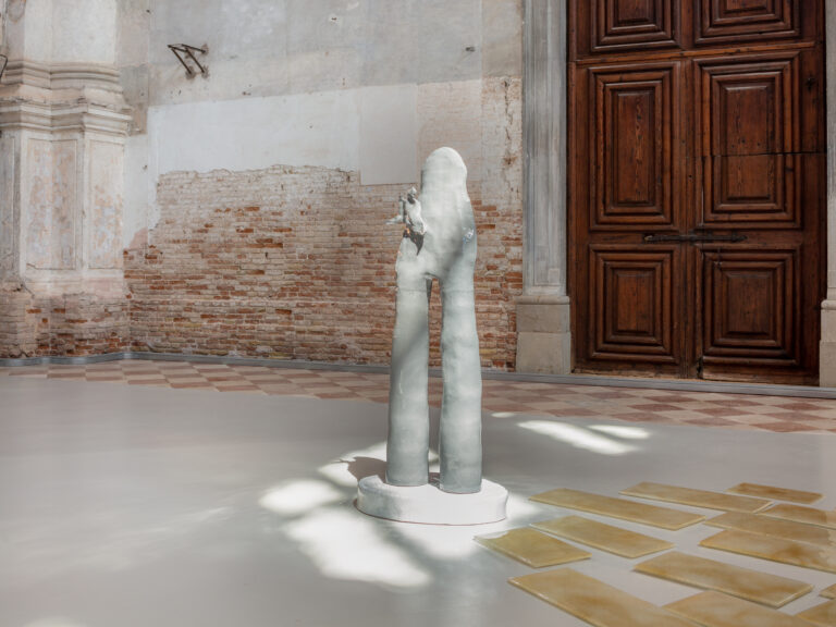 Petrit Halilaj e Álvaro Urbano, Ensemble lunare per mari in rivolta, 2023. Veduta della mostra Thus waves come in pairs, Ocean Space, Venezia. Cortesia degli artisti e ChertLüdde, Berlino; kurimanzutto, Città Messico / New York; Mennour, Parigi; Travesía Cuatro, Madrid / Città del Messico / Guadalajara. Foto: gerdastudio