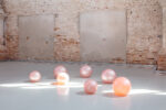 Petrit Halilaj e Álvaro Urbano, Ensemble lunare per mari in rivolta, 2023. Veduta della mostra Thus waves come in pairs, Ocean Space, Venezia. Cortesia degli artisti e ChertLüdde, Berlino; kurimanzutto, Città Messico / New York; Mennour, Parigi; Travesía Cuatro, Madrid / Città del Messico / Guadalajara. Foto: gerdastudio