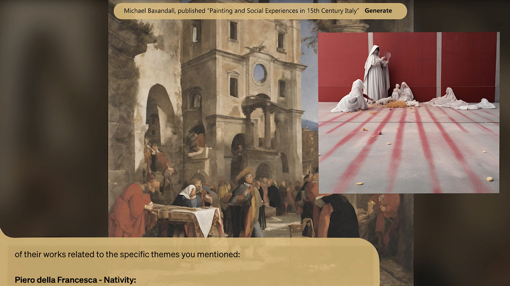 La scelta di dedicare un lavoro al denaro nasce dalle ricerche sulle tecnologie del web che mi hanno portata a frequentare nel 2016 Bitcoin Meet up in Svizzera e poi a ottenere nel 2019 un Master of Science in Digital Currencies. Uno dei corsi di questo Master era tenuto da Adam Hayes (che poi ho invitato a tenere una delle performance lecture) ed era dedicato alla storia del denaro. È lì che ho scoperto le storie eterodosse del denaro, autori come David Graeber e i suoi 5000 anni di debito e lì che ho messo in discussione assiomi che ci vengono insegnati a scuola come per esempio “viene prima il baratto e poi il denaro”. Il denaro scolpisce le nostre vite; eppure, non c’è una consapevolezza profonda della sua storia e dei sistemi economici, antropologici e di potere cui è connesso. Usare le tecnologie, le cosiddette intelligenze artificiali, è stato poi inevitabile. Piattaforme come per esempio OpenAI o Midjourney, anche se cambieranno nome o enti finanziatori, saranno i prossimi giganti del web. Non solo per le ingenti risorse economiche che hanno permesso di raggiungere la sofisticatezza di queste macchine, ma anche per la quantità di dati che hanno assorbito nella fase di “training” e per quella che continuano ad assorbire mentre le utilizziamo. Continuiamo a formare questi modelli mentre li usiamo, pagando anche un abbonamento in alcuni casi. E su questa formazione continua indotta dalle e dagli utenti ci sono già discussioni in atto da parte di teoriche, teorici, scienziate e scienziati.