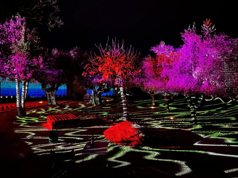 Oltre cento metri di superfici di proiezione, consentono al visitatore di sperimentare una dimensione onirica, sulle sponde del lago umbro. Il progetto è stato realizzato da Int.Geo.Mod, con la collaborazione del Conservatorio di Musica ‘F.A. Bonporti’ di Trento e Riva del Garda, e l’installazione luminosa sarà visibile fino al 6 gennaio 2024, nella fascia oraria compresa tra le 17 e le 23. Il percorso prende vita nella storica Rocca del Leone di Castiglione del Lago dove le pareti in pietra, gli alberi interni alla corte e il rudere di una chiesetta sconsacrata diventano superfici di proiezione per un’esperienza multimediale immersiva. Si narra la storia del ‘Natale di Pì’, un giovane solitario che, grazie all’intervento inaspettato di Kokai, un gattino nero, saprà uscire dal “buio” per incamminarsi verso le luci del Natale e della vita. Tra proiezioni visive, luci, musiche ed effetti sonori ambientali.