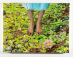 Natura che ha la stessa frequenza e lo stesso splendore ne Il sogno di Placido (2023). Il paesaggio qui annega in un blu lapislazzulo, con cui l’artista omaggia il “ciclo giottesco degli Scrovegni”, mentre “le piante sono d’oro e di smeraldo, i fiori rossi come rubini”. La notte in cui il cuore di Placido – nome di battesimo di Sant’Eustachio, martire cristiano – ricevette l’illuminazione che lo condusse alla conversione, è una notte mai cieca, mai spaventosa, infinitamente radiosa, nonostante lo spicchio minuscolo di luna. I due cervi che gli appaiono, animali sacri secondo molti culti pagani, sono qui portatori di fede e di rivelazione: posti al centro del quadro, diventano fulcro magnetico e unici attori, in assenza del protagonista. Sarà lo stesso spettatore, contemplando la scena, a oltrepassare il bordo del quadro e a identificarsi con chi, in quell’istante, intuiva la presenza di Dio nell’immagine delle due creature.