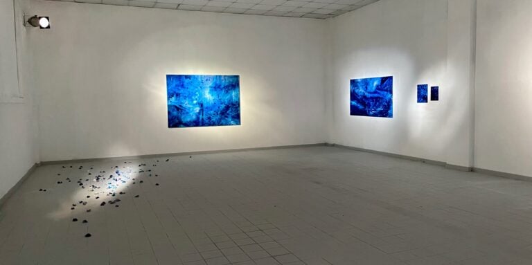 Le note blu che contraddistinguono le tele dell’artista romana conducono il pubblico in una dimensione sospesa, dove i petali dipinti e altri scultorei si fanno portavoce di un passato lontano. Frammenti di aneddoti, luoghi e frasi si esprimono attraverso il linguaggi della pittora, dove ognuno può “immergersi” e riconoscersi.