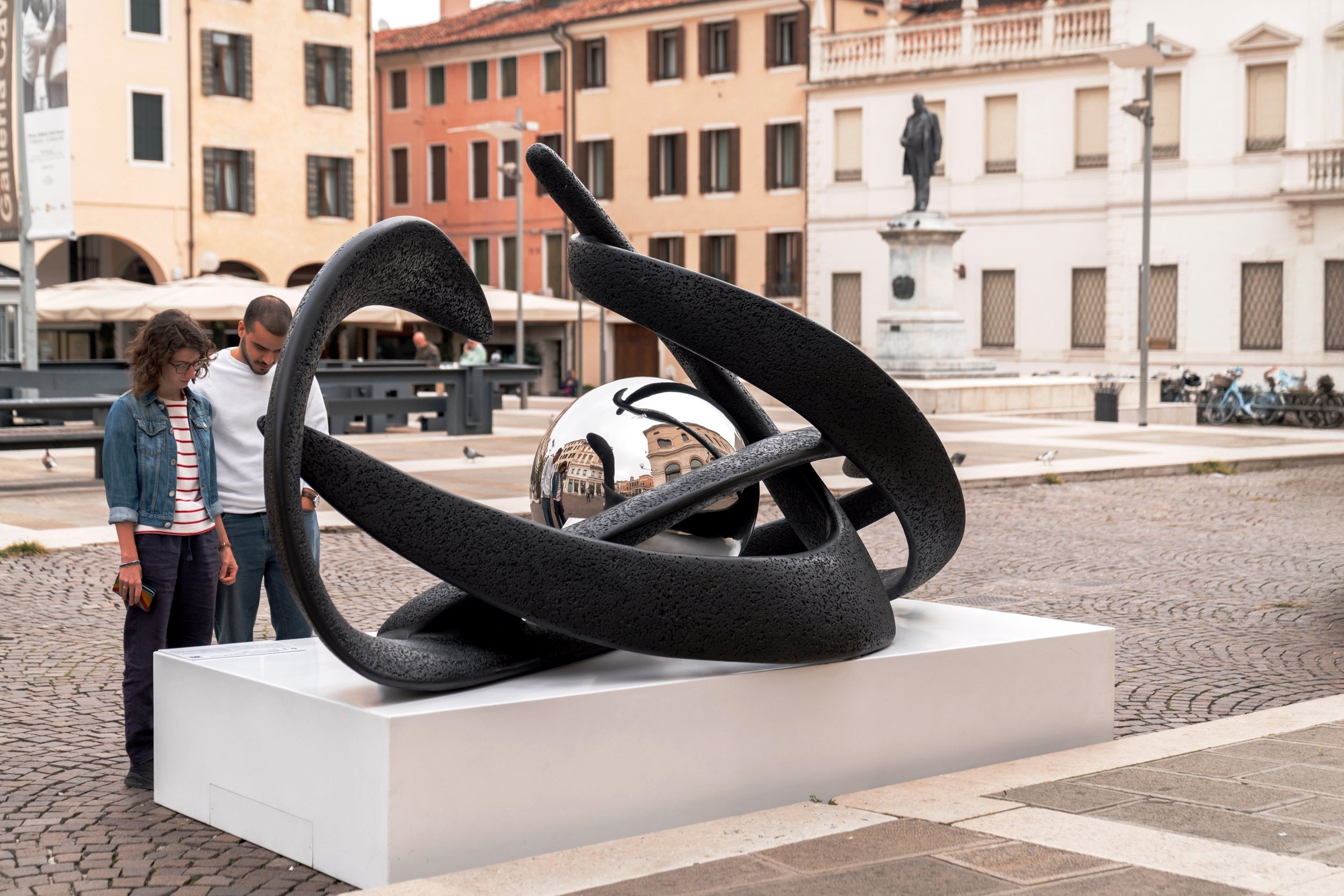 Le altre sculture si incontrano presso i luoghi simbolici del centro città e in alcuni spazi periferici. Dal Castello Carrarese al Listòn, da piazza Eremitani ai Giardini dell’Arena Romana fino a piazza Azzurri d’Italia. Ogni opera racconta una storia: Lo Specchio dell’Assoluto, di fronte al Museo Eremitani, evoca il rapporto tra uomo e infinito; Attimo Fuggente, nell’area pedonale tra piazza Eremitani e corso Garibaldi, ci ricorda che la vita è breve e va vissuta nel presente; Sfera Conchiglia, lungo il percorso che conduce alla Cappella degli Scrovegni, custodisce la perla dell’essenza umana; Sfera Sirio, collocata nei Giardini dell’Arena Romana, omaggia le bellezza del cosmo; Verso la Libertà, nella Galleria Cavour, apre le forme oltre gli schemi; Mistral, con le sue volute rosse collocate nell’area dell’ex piazzale Boschetti, simboleggia la forza del vento e la rinascita interiore. In aree meno centrali, completano il tour L’Uomo Quantico e Anima Latina.