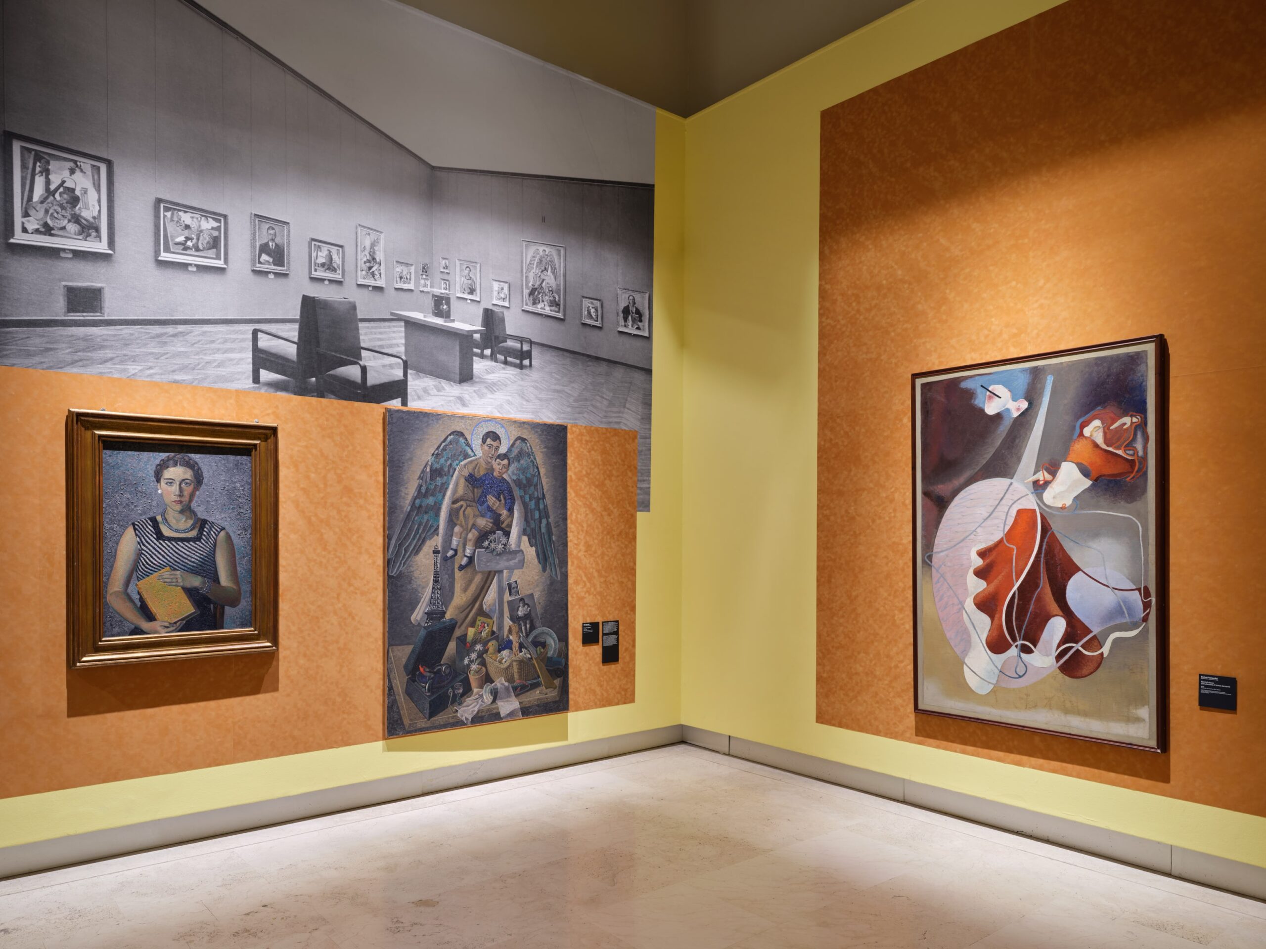 Il risultato? Una mostra di mostre e narrazioni diverse che si intrecciano, in maniera piuttosto tortuosa e senza una regia forte alle spalle, all’interno di dodici sale del primo piano del palazzo, adattato alle esigenze di una rassegna che riunisce 187 opere realizzate da 54 artisti e artiste viventi, grazie ad un allestimento chiaro ed efficace, firmato dallo studio BRH+/, di Barbara Brondi e Marco Rainò. Il progetto di Beatrice prosegue con I giovani e i maestri: la Quadriennale del 1935, un omaggio alla seconda edizione della manifestazione – la prima si svolse nel 1931 – curato da Walter Guadagnini, che ha selezionato 33 artisti tra i 700 che parteciparono nel 1935. Strana scelta per un’istituzione legata alla promozione del contemporaneo commemorare una rassegna di 90 anni fa, in pieno regime, un anno prima della guerra di Etiopia. Sul senso e l’opportunità di un’operazione del genere rimangono molti interrogativi, ma non è questa la sede per analizzare la rassegna.