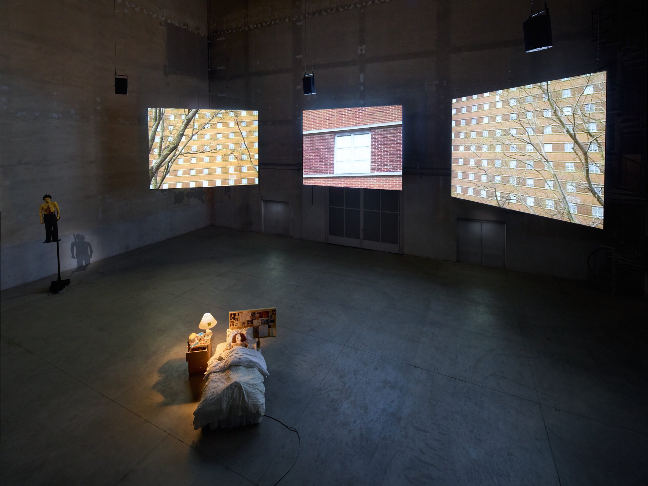 Quando il visitatore sposta le tende per entrare nell’immenso ambiente dell’HangarBicocca, dove forse pensa di trovare le fotografie di Nan Goldin (Washington D.C., 1953), si trova di fronte al buio, in cui a fatica scorge numerosi padiglioni neri, appositamente progettati dall’architetta Hala Wardé per la mostra This Will Not End Well. Il visitatore è, così, condotto in un viaggio iconografico attraverso una sorta di villaggio in cui sono proposti gruppi di slideshow, che nella loro totalità sono il più grande corpus mai riunito dell’artista americana.