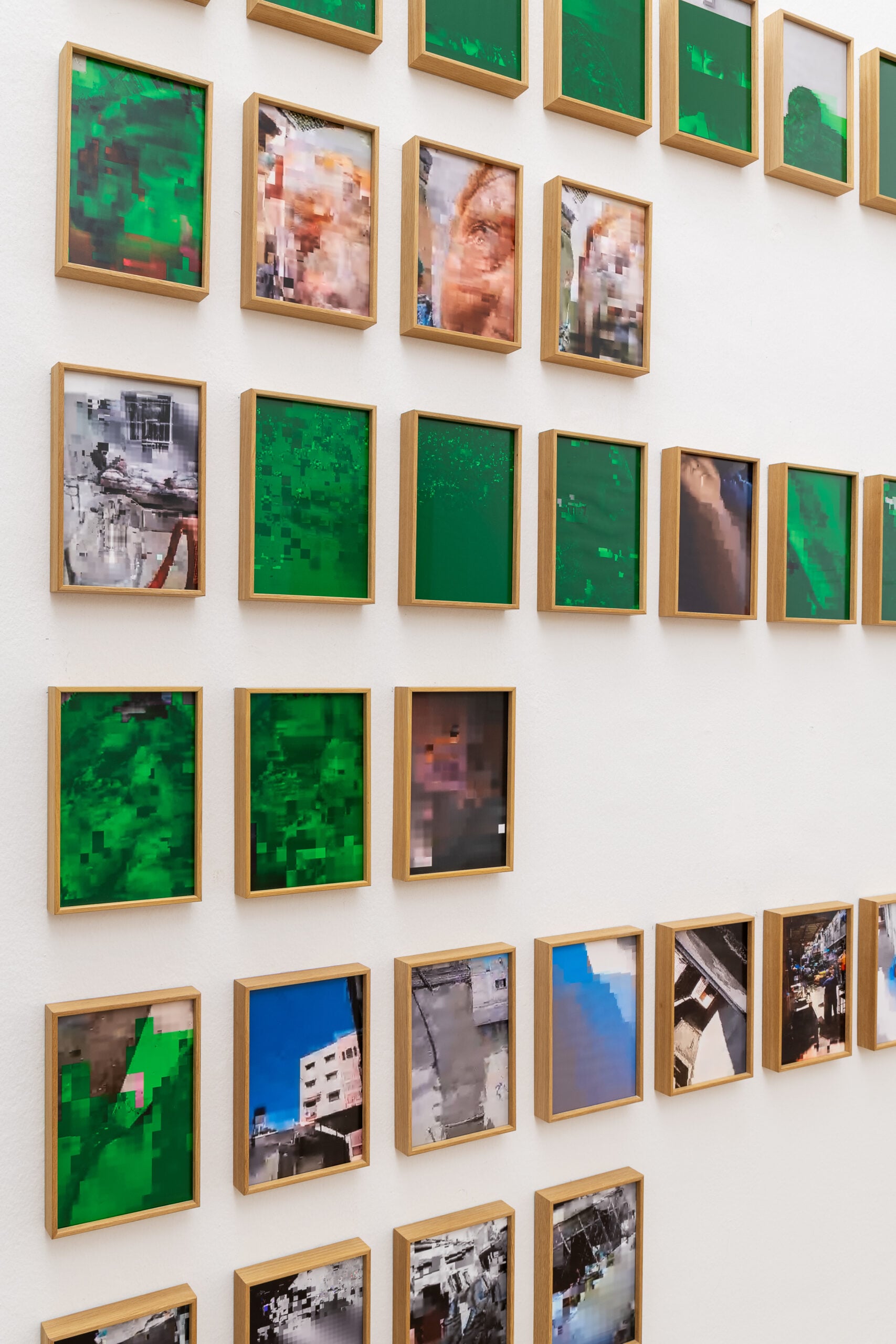 A seguire c’è la sezione dedicata alle impronte delle strade di Gaza, echi di cammini perduti realizzati con disegni a frottage. E poi la serie di scatti delle watchtowers, le torri di guardia israeliane in Cisgiordania che scandiscono la politica del controllo coloniale. Oppure le foto sfocate, veri e propri screenshot dei video crudi che documentano gli attacchi su Gaza. L’artista ha voluto catturarli così, prima che diventassero nitidi.