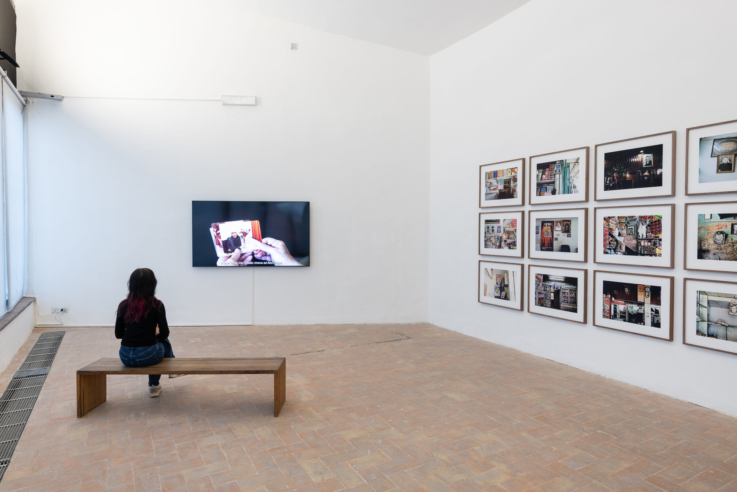 Proseguendo nel percorso dell’esposizione appesi alle pareti ci sono anche sono gli screenshot che l’artista ha realizzato nel corso di una serie di videochiamate con la madre e con gli altri familiari che si trovavano in Palestina. Il titolo della serie è Distruptions, tutte fotografie realizzate tra il 2015 ed il 2017 che ci riportano attimi di vita quotidiana, punti di contatto tra cuori lontani, separati dalla distanza e soprattutto dal dolore dettato da un perenne senso di precarietà.