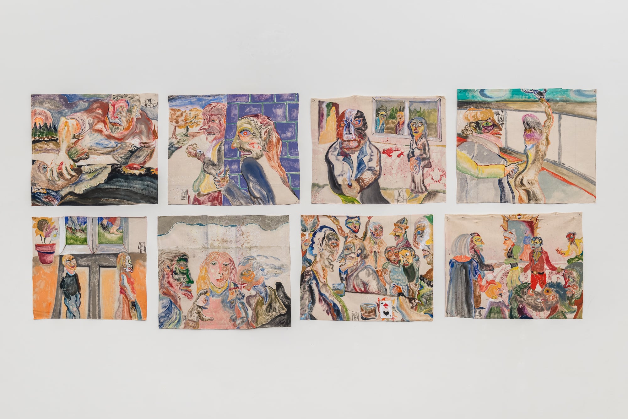 In I quadrucci questa dimensione si concentra in un nuovo ciclo di dipinti di medio formato, concepiti come frammenti di un racconto più ampio. Le tele non illustrano una storia lineare, ma ne suggeriscono le traiettorie: ingressi, scarti, rivelazioni, cadute. L’impressione è quella di trovarsi di fronte a una narrazione che si costruisce per accumulo e slittamento, in cui le immagini funzionano come episodi autonomi ma interconnessi, capaci di rimandare l’una all’altra senza mai chiudersi in una sequenza definitiva.