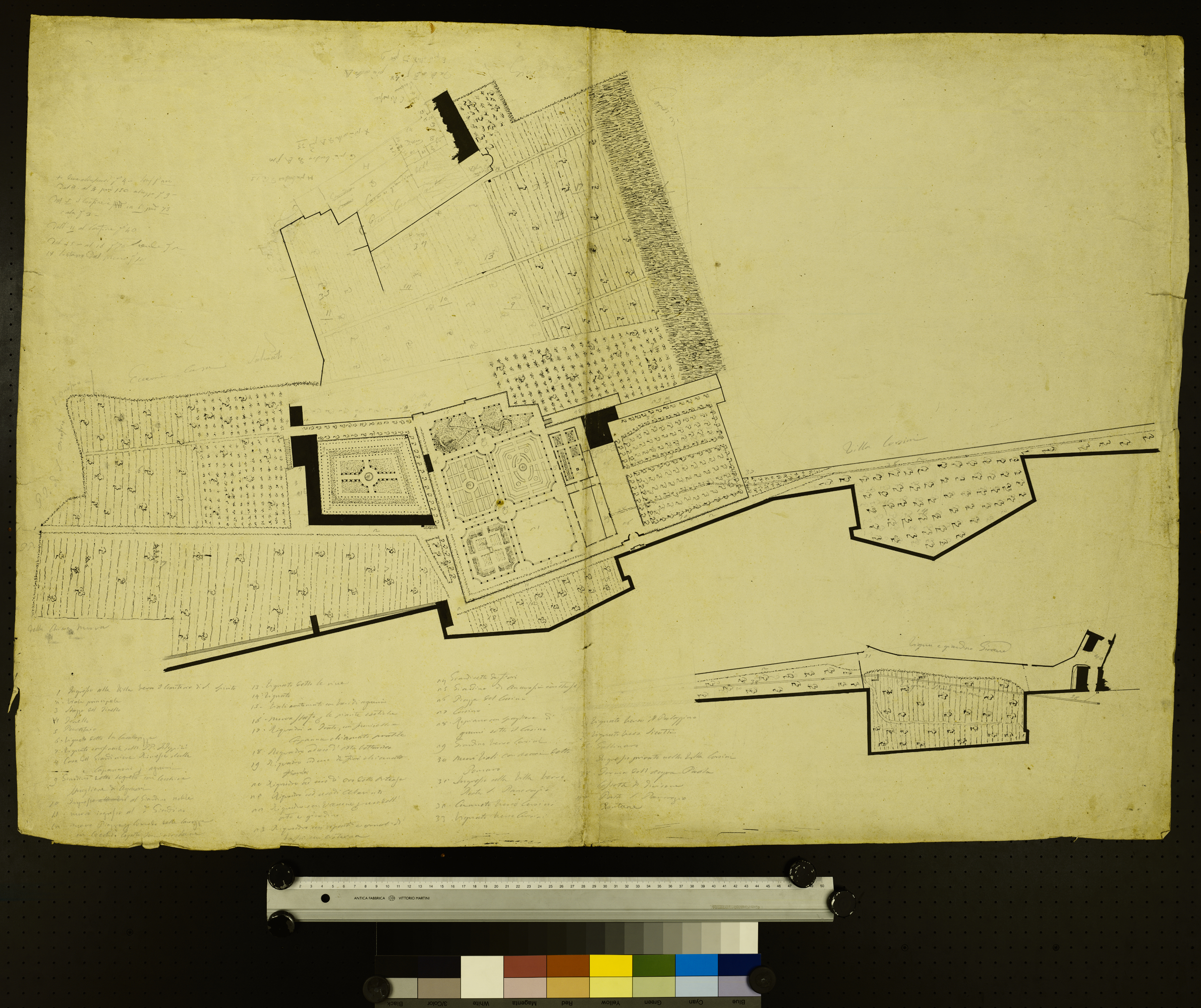 Il Settecento attenuò i fasti barocchi. Il giardino diventò non solo ornamento, ma anche luogo di studio, svago intellettuale e collezionismo botanico grazie a serre e aranciere. Nacquero i primi esempi di giardino all’inglese, dove il rigore geometrico lascia spazio a una natura più libera, secondo l’estetica del pittoresco. Alcune residenze diventarono tappe del Grand Tour che trasformò i giardini in spazi di rappresentanza culturale, più orientati a un’esperienza estetica raffinata e colta che alla magnificenza barocca. Il verde iniziò a essere studiato con un approccio scientifico attraverso la diffusione di tavole planimetriche come quelle di Giuseppe Valadier che riflettono la formazione neoclassica dell’artista. Tra i pezzi più interessanti in esposizione, un piccolo olio su tela di data incerta attribuito ad Antonio Canova che ritrae se stesso intento a mostrare il disegno della scultura Ettore e Lica ai committenti, membri della ricca famiglia Torlonia, nel giardino della loro villa.