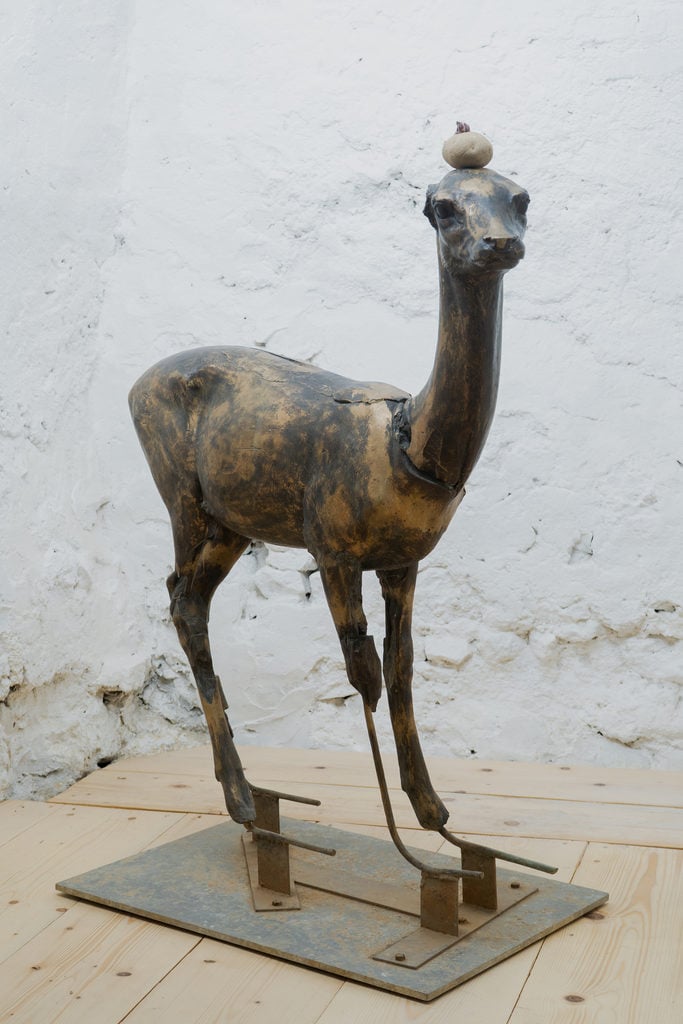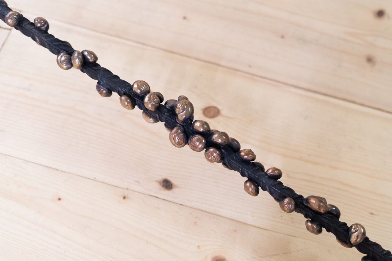 La visione lineare del tempo scandisce le opere del piano terra. Nell’intervento di Ozzola, le chiocciole in bronzo percorrono lentissime e immutabili travi in ferro. Sono organismi in trasformazione: il loro incedere è laborioso, incessante e al tempo stesso fonte di vita. Gli fa da contraltare Sopra i figli dei figli il sole, calco in bronzo di un daino a dondolo in legno regalato a Consani da un artista di Livorno quando era bambino. Il giocattolo porta con sé i segni del passare degli anni, il deperimento, i risultati di qualche gioco più energico, di un abbraccio goffo. Con la fusione in bronzo l’artista congela l’azione del tempo, e ci ricorda che nasciamo tutti senza un segno ma è nello svolgersi delle cose, anche se traumatiche, nel flusso perpetuo e costante degli accadimenti, nella ricerca rabdomantica e cosciente della luce, che scoviamo, anche se non ci par vero, la perfezione.