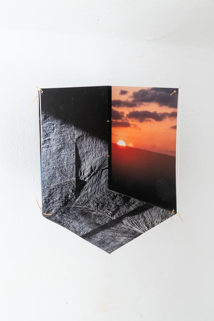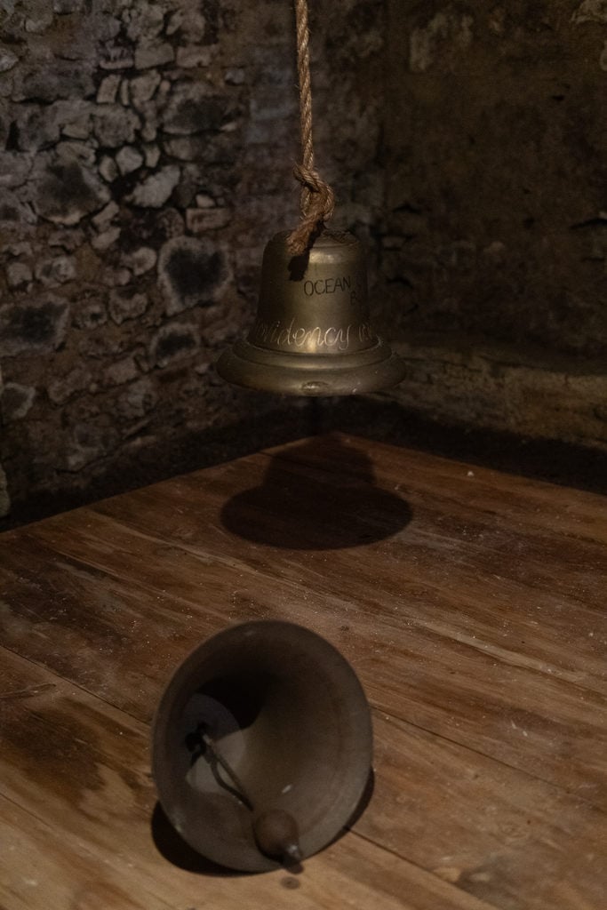 Come in un esercizio zen, il tempo e la luce guidano l’esperienza della mostra Niji hajimete arawaru: Appare il primo arcobaleno, quinto dialogo della piattaforma culturale ieedificio57, nata nel 2024 a San Gimignano per volontà di Michelangelo Consani (Livorno, 1971). Questa volta a confrontarsi è Giovanni Ozzola (Firenze, 1982): due artisti apparentemente distanti che in questa mostra trovano invece una sintesi omogenea a partire dalle fondamenta, in un percorso dall’oscurità verso il cielo. Nella cisterna è infatti Ozzola a misurarsi con la dimensione sotterranea dello spazio, inserendo due campane marittime in bronzo. Nessuno le suona, sono le scritte che l’artista vi applica ad evocarvi una possibile voce.