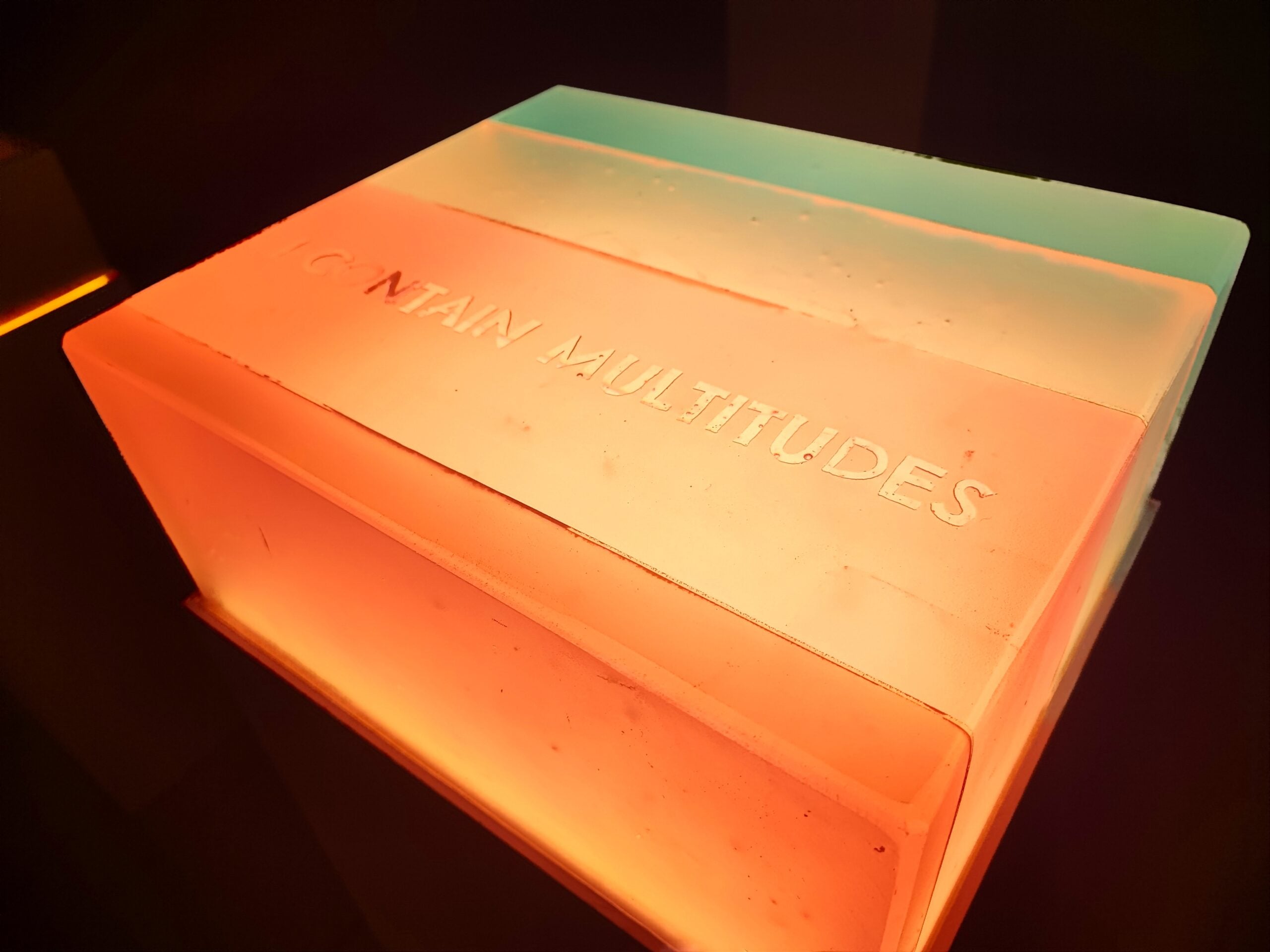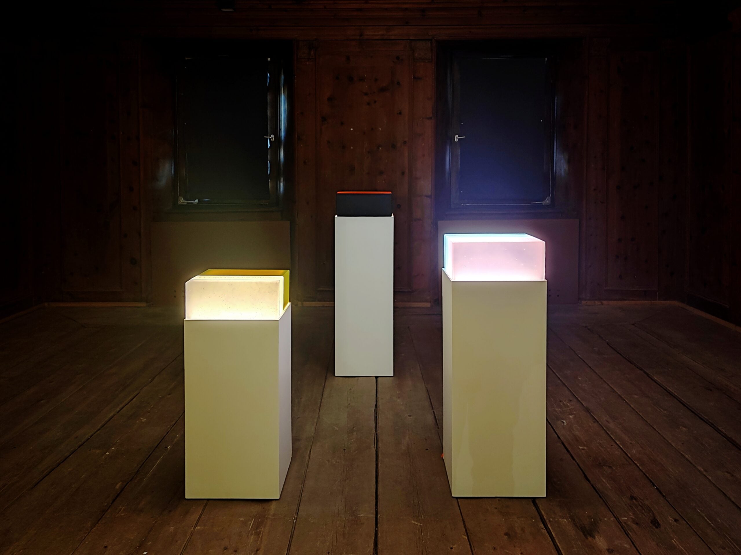 Un percorso intenso che lentamente svela le opere e nel farlo costruisce un concentrato esperienziale in dialogo diretto e continuo con il fruitore che diventa attivatore dell’opera e non più solo spettatore passivo. Una sensazione, questa, che pervade in maniera evidente, opere come le tele Make it shine, 2023, oppure le sculture luminose in vetro colorato I Contain Multitudes, 2022, passando dai collage della serie The School of Narrative Dance – Storyline, 2019, fino a giungere ai neon Breathe, U Are Enough; Remember the First Time You Saw Your Name; We Rise by Lifting Others del 2022 e Dance First Think Later del 2021. La mostra si conclude idealmente con la scultura Autoritratto, 2022 una piccola opera in vetro in scala 1:1 delle mani dell’artista, posizionata davanti a due finestre che si aprono sul paesaggio innevato creando un gioco di rimandi, dove le mani non sono più solo quelle dell’artista, del creatore, del demiurgo ma la sintesi di tutte le mani che ha incontrato nel suo lungo e affascinante viaggio tra i sentieri impervi dell’arte.