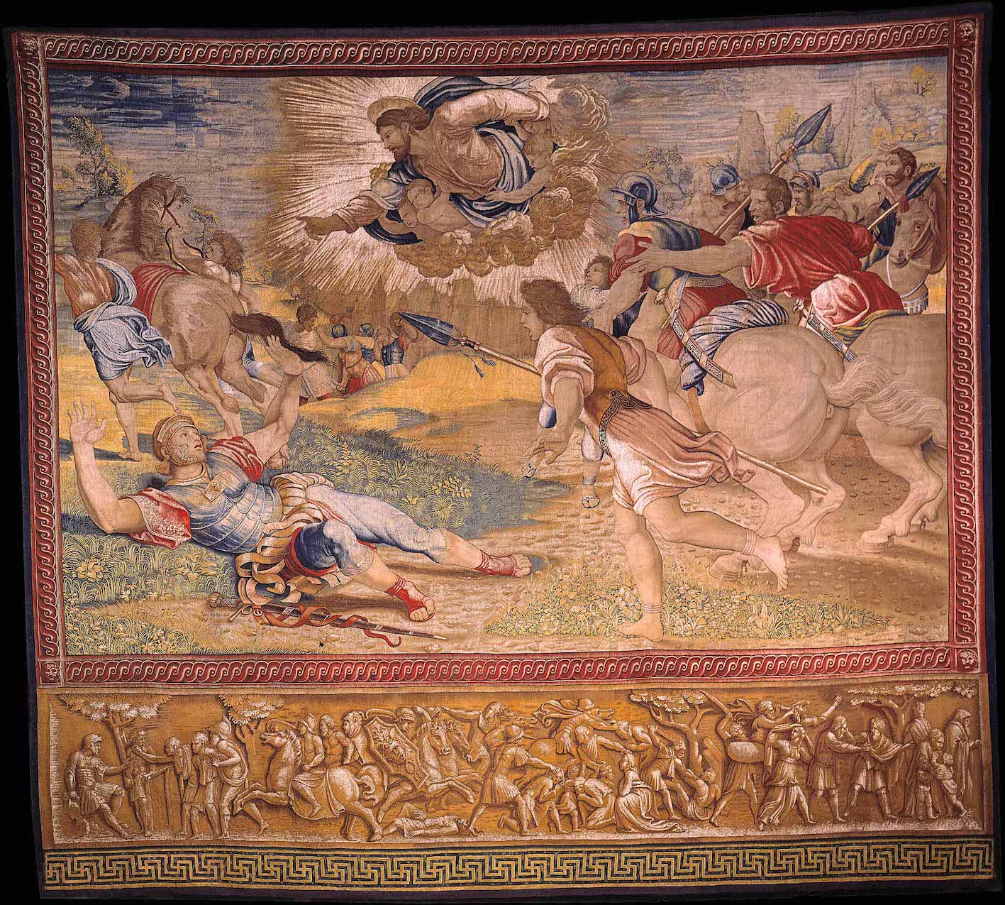I cartoni – attualmente conservati al Victoria and Albert Museum di Londra – erano stati disegnati dal celebre pittore urbinate tra il 1515 e il 1516 per poi essere tradotti in tessuto a partire dal 1517 presso la bottega del famoso arazziere Pieter val Aelst, a Bruxelles. Tratte dagli “Atti degli Apostoli”, le dieci scene rappresentate in larga scala (quasi cinque metri di altezza e più di sei di lunghezza) raffigurano i seguenti episodi: Lapidazione di Santo Stefano, Pesca miracolosa, Pasce oves meas (Consegna delle chiavi), Guarigione dello storpio, Morte di Anania, Conversione di Saulo, Accecamento di Elima, Sacrificio di Listra, San Paolo in carcere (Terremoto), San Paolo ad Atene. Solitamente custoditi ed esposti a rotazione nella sala VIII della Pinacoteca Vaticana (sottoposti a delicate operazioni di conservazione a cura del Laboratorio di Restauro Arazzi e Tessuti dei Musei Vaticani), in questa mostra (fino al 23 febbraio 2020) curata da Alessandra Rodolfo gli arazzi dialogano per la prima volta con i capolavori di Michelangelo mostrandosi al grande pubblico nella loro straordinaria bellezza e rivelando, oltre all’eccellenza nell’esecuzione tecnica e nella qualità manifatturiera, la preziosità delle bordure tramate in oro. “La Cappella Sistina viene sempre identificata con Michelangelo e con i grandi “quattrocentisti” che nel XV secolo l’affrescarono lungo le pareti, ma è a Raffaello che dobbiamo il completamento iconografico, teologico e catechetico di quel luogo universale con la realizzazione degli arazzi con le storie di San Pietro e San Paolo, i patroni della Città Eterna e della Chiesa Romana, che egli inaugurò, alla presenza del suo grande committente Papa Leone X de’ Medici il giorno di Santo Stefano del 1519, a pochi mesi dalla sua improvvisa e prematura morte”, racconta la direttrice dei Musei Vaticani Barbara Jatta.