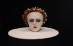 Da qui nascono molte delle opere in mostra. Achille! (2021), con il suo elmo e un occhio cerchiato d’azzurro, è una star scolpita in un blocco di marmo italiano del XIX secolo, celebrato su un plinto obliquo futuristico; e a proposito di musica e di show, David Bowie rivive nella serie di teste di Antinoo (Portrait of Antinous as a Rock star, 2023), sei pezzi unici in gesso, in cui il celebre fulmine rosso, make up ideato per la copertina di Aladdin Sane, marchia i tratti gentili del giovane amante di Adriano. È così, ne Lo sguardo di Adriano (2018), la pittura torna a reinventare una testa antica (un marmo romano del 117-138 d.C.), restituendole gli occhi, con tanto di eye liner e mascara, insieme a una certa, buffa malinconia. Ancora, diventa una primitiva dea della fertilità la nota influencer citata in Portrait of Kim Kardashian (Ante Litteram), una testa del III sec. d.C. innestata su un corpo bronzeo dalle forme prominenti, mentre in Non ho l’età un volto di donna anziana di epoca Flavia viene montato su un virginale corpo in marmo rosa del Portogallo, riproduzione di una Venere di Prassitele. Citazione metafisica per la Musa della Satira, fusione tra una statua romana acefala e una lucente testa ovale à la de Chirico, mentre sprofonda in una dolcezza tragica il viso di una piccola testa del I sec. d.C., su cui Vezzoli posa una corona aurea di foglie di plastica, lasciando emergere dal viso truccato i tratti di un adolescente ermafrodita, di una figura sacerdotale o di una maschera cinematografica d’antan.