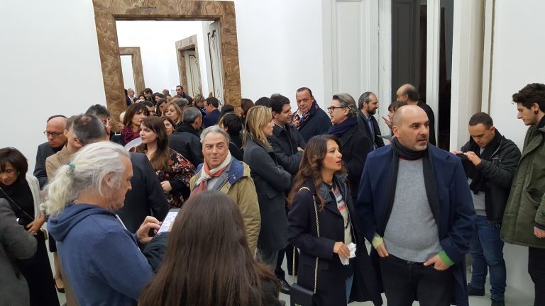Festeggiamenti durati due giorni: venerdì 16 dicembre tutti gli ospiti invitati alla Boheme di Puccini al Teatro San Carlo (120 anni dopo la prima rappresentazione), sabato opening della mostra in galleria e poi cena al Refettorio di Santa Chiara. La mostra? Ve ne parleremo in altra sede, con la straordinaria teoria di opere – solo per citare qualcuno – di Carl Andre, Giovanni Anselmo, Jimmie Durham, Gilbert & George, Thomas Hirschhorn, Sol LeWitt, Giulio Paolini, Giuseppe Penone, Edi Rama, Anri Sala, Andres Serrano, David Tremlett, Lawrence Weiner. Intanto, ecco una fotogallery della serata e un breve filmato sul discorso che il gallerista ha pronunciato.