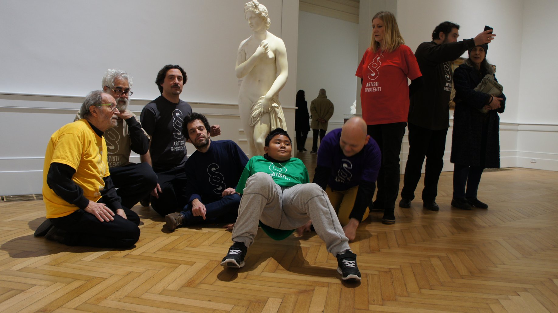 “Ciascuno ha pagato il proprio biglietto d’ingresso e ha potuto agire (mai impedito dal personale del Museo) nell’interazione con le opere esposte in alcune sale”. Inizia così il racconto dell’occupazione (pacifica, addirittura con pagamento del biglietto!) della Galleria Nazionale d’Arte Moderna di Roma – o solo Galleria Nazionale, nella nuova versione targata Collu – da parte di un gruppo organizzato di artisti. Loro si chiamano artisti§innocenti, e si definiscono “gruppo performativo a presenze variabili, composto da artisti visivi e gente comune, attivo dal 2007 con progetti espositivi, improbabili operette morali: tutte attività a basso livello estetico, disciolte in contesti diversi, sempre a diretto contatto col pubblico”. Recentemente se ne è parlato quando tra agosto e ottobre 2016 curato presso i magazzini MAS di Roma i progetti espositivi Camerini/Cambi d’artista e Nuovi Camerini/Cambi di Stagione.