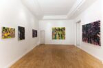 Personaggio particolare questo Dewdrinker, il bevitore di rugiada. Di certo si sveglierà di buon’ora, al mattino, per non perdere l’appuntamento con banane, melograni e fichi, depositari e ormai aroma delle ambite gocce d’acqua. È attraverso la sua personificazione mitologica che Nicholas William Johnson (Hawaii, 1982; vive a Londra), artista americano alla sua prima personale in Italia, si pone alla ricerca della coscienza del mondo vegetale. Natura inarrestabile e forse infetta, che trasuda umidità caleidoscopiche e cela in sé inesplorate zone d’ombra. Non c’è pallore, tonalità accese si ramificano per guadagnare spazio fino a invadere la totalità della tela.
