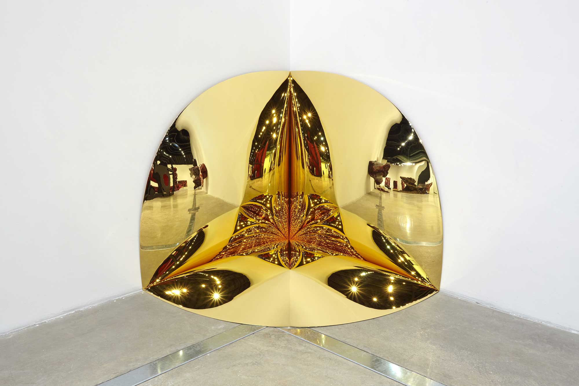 La lacerazione di quella forma è presentata al Macro di Roma (col contributo, probabilmente decisivo, di grandi gallerie private internazionali) dall’artista anglo-asiatico Anish Kapoor (Bombay, 1954; vive a Londra), nato da padre indiano e madre ebrea irachena. Kapoor è autore di opere in equilibrio tra scultura e architettura, come la Arcelor Mittal Orbit di Londra, o installazioni urbane quali il Cloud Gate di Chicago. Nelle forme delle sue sculture biomorfe a grande scala si coglie la tensione della pelle, che spesso è una superficie specchiata sulla quale si riflettono il cielo e la città, come nello Sky Mirror di New York. Altrove, le sue installazioni mostrano solo la loro epidermide, tesa in una tensostruttura dalle dimensioni abnormi, dentro la quale si percorre lo spazio calandosi in una dimensione intrauterina, come al Grand Palais di Parigi o alla Tate Modern di Londra, oppure immergendosi in un paesaggio metafisico, come nel Dismembrement, Site I in Nuova Zelanda.
