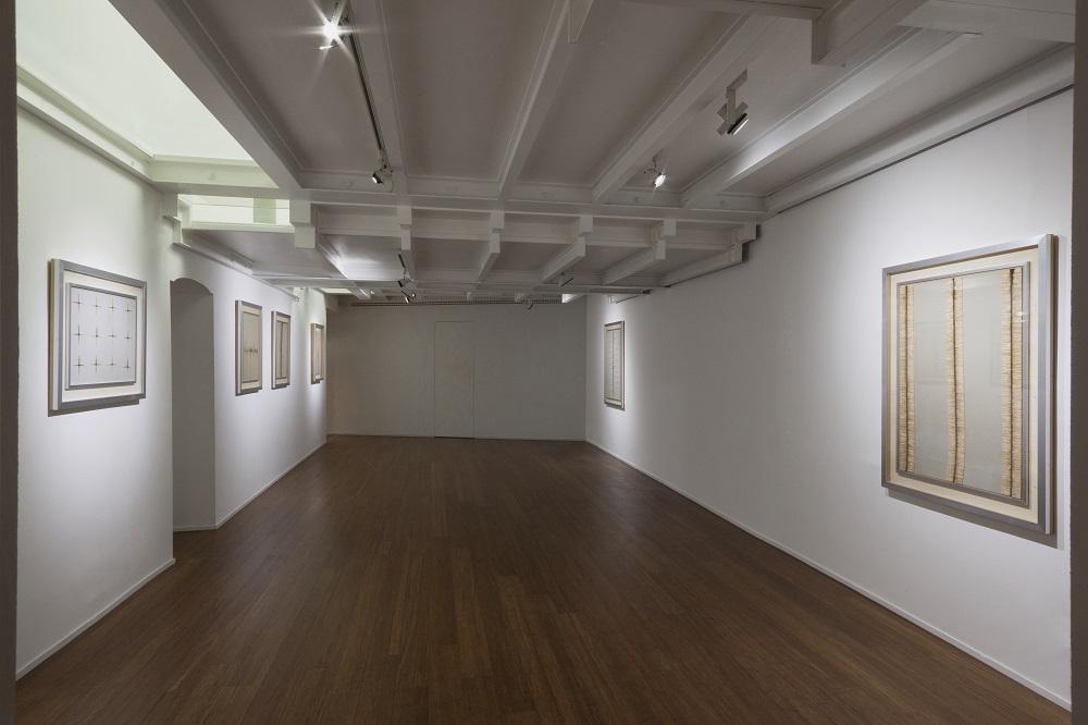 Nel 1962 Aubertin fa parte a buon diritto della collettiva Nul, allo Stedelijk Museum di Amsterdam, come membro fondatore del movimento Zero. Il fuoco entra ora nelle sue opere, ravvivandole ulteriormente, trasformandole e distruggendole per farle rinascere. Alle pareti di ABC Arte si ammirano Tableaux Feu, Tableaux Clous e Parcours d’alumettes, le serie di tele monocrome animate da chiodi o da fiammiferi. Nel silenzio pittorico si colgono qui le variazioni minime – ed effimere – della fiamma: un tocco di leggerezza metafisica.