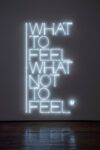 Immagine, superficie, luce, colore, pensiero. Di questo sono fatte le opere installative di Maurizio Nannucci (Firenze, 1939), che indaga le potenzialità della parola e ne allarga la portata, un po’ come negli esperimenti di letteratura potenziale del gruppo OULIPO. La sua ricerca è sospesa nell’urgenza della scelta: cinque opere che manipolano altrettante frasi pensate dall’artista, riferite agli stimoli ricevuti quotidianamente; stimoli affrontati con l’istinto, cui poi si sovrappone il senso critico. Perché nella caotica società attuale l’individuo è sottoposto a continua pressione, al punto che il concetto di scelta, la semplice azione dell’utilizzo del proprio libero arbitrio, diviene un’urgenza, un piccolo dramma personale.