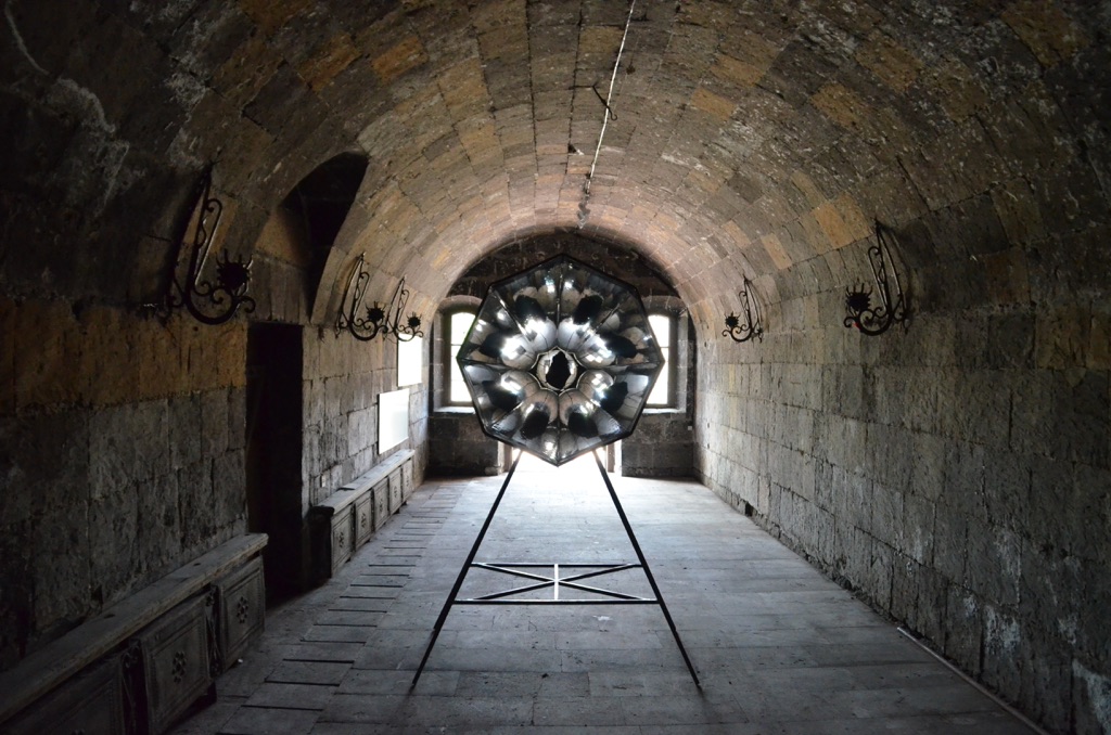 Al crocevia fra le tre tematiche stanno i lavori presentati da Benji Boyadgian: l’artista israeliano è stato, insieme a Riccardo Arena, il più tenace nello scoprire il territorio armeno, concentrandosi non tanto sui magnifici monasteri quanto sulle rovine più antiche, preistoriche. Da qui è nata una serie di disegni che “mescola differenti eredità archeologiche”, ci ha raccontato Boyadgian, “per mostrare la futilità di ogni epoca”. Allo stesso modo, le due sculture, con specchi, lenti e ossidiana, conducono su false piste interpretative: il fine è, in piena coerenza con il fine di Daumal, riconoscere se stessi.