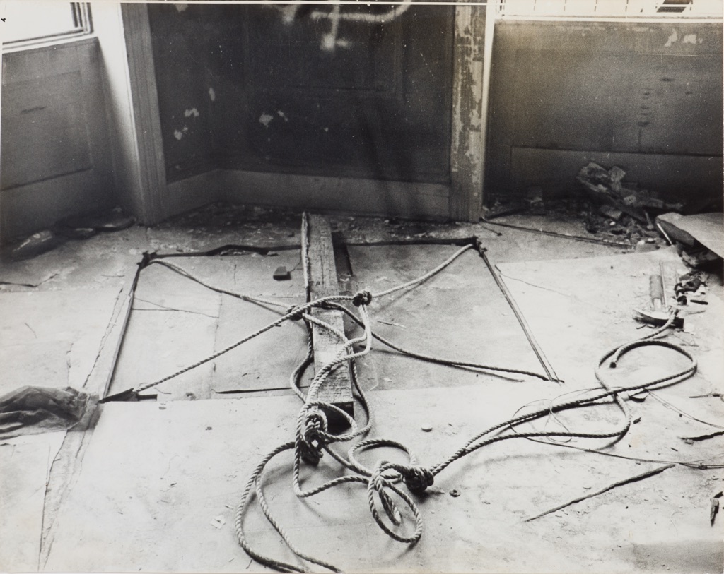 Nei Bronx Floors di Matta-Clark i celeberrimi tagli dell’artista americano sono applicati alle travi di un edificio abbandonato nell’omonimo quartiere della Grande Mela, mentre i Borg floors della Bucher individuano nel pavimento del suo studio zurighese ‒ un’ex cella frigorifera di una macelleria ‒ lo straniante oggetto di un calco dalla consistenza quasi organica. Superfici e memorie di un tempo sezionato o calpestato si tendono la mano in un surreale gioco di rimandi, tra sopra e sotto, vuoto e pieno. Completano la mostra i video proiettati verso la strada, vestigia di due performance andate in scena nello stesso anno, il 1972: Tree Dance di Matta-Clark e Body Shells di Bucher, a riprova di un sentire comune, finalmente portato alla luce.