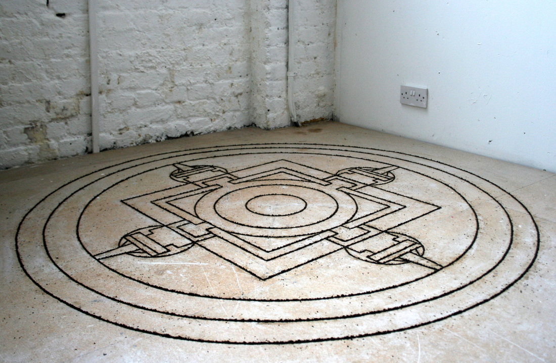 “Molte lune fa”, un passato condensato in un modo di dire, un vissuto, quello della Luna, riassunto in un susseguirsi di opere che gravitano negli spazi della galleria, tra le pareti e il pavimento. Superfici lunari che si riscoprono in oggetti di uso comune. Frammenti materici di meteoriti che, come sabbia fine, disegnano mandala intrecciandosi in un cosmo simbolico fatto di significati.