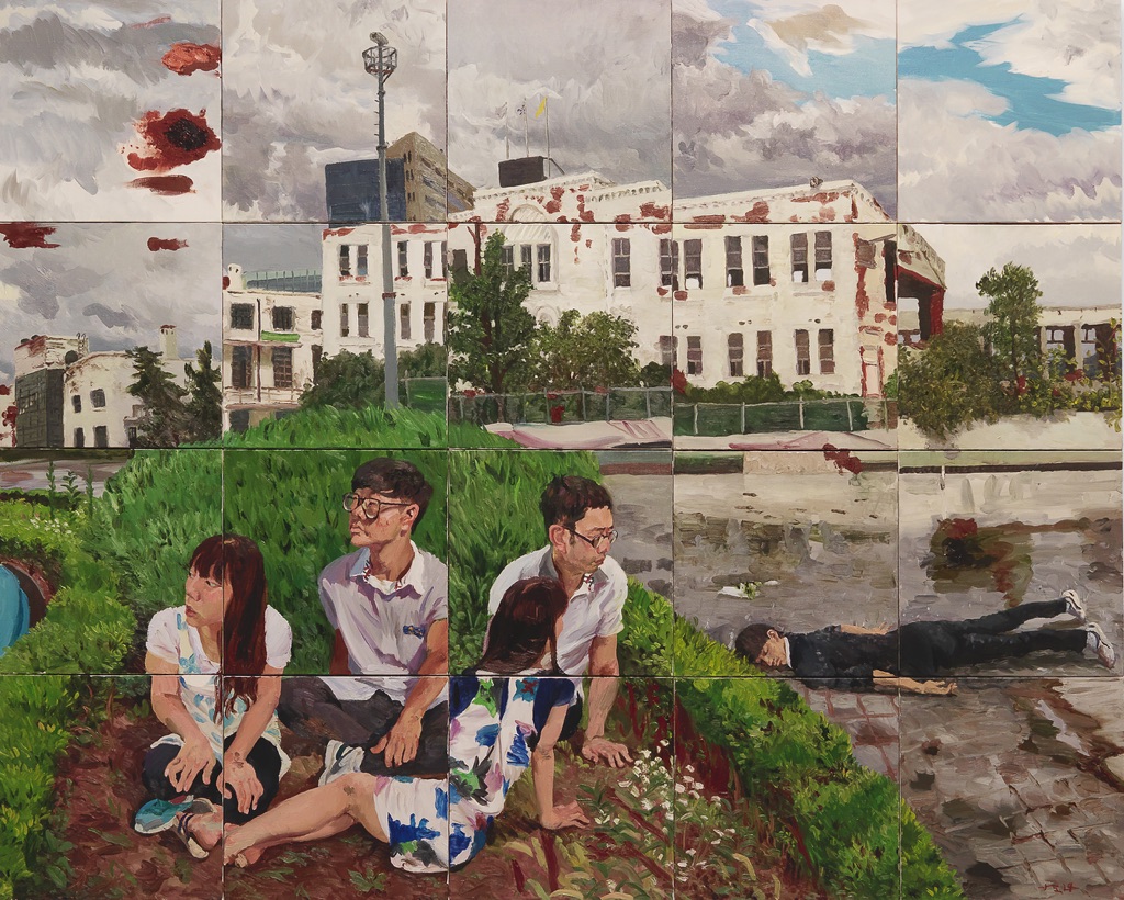 Considera che la pittura tradizionale cinese è realizzata tracciando linee con l’inchiostro sulla carta di riso, mentre gli artisti cinesi che partecipano alla mostra impiegano la pittura a olio come medium principale. Questo indica che la pittura cinese attuale, all’interno del proprio sistema, innovativa rispetto alla propria tradizione lo è per forza di cose. Quest’attitudine è legata a precise contingenze storiche. Gli artisti cinesi hanno freneticamente sperimentato i linguaggi dell’arte occidentale del Novecento in poco meno di un ventennio. Questo spiega perché molti di loro utilizzano più linguaggi contemporaneamente.