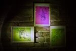 Si scende nel buio, la vista sostenuta da un unico punto luce, un led portatile da recare con sé, mentre Allegra Corbo (1968), artista, performer, street artist, teatrante ed educatrice, invita ad abbandonare effetti personali, telefoni, amici. Come Orfeo, la discesa verso il ventre della terra si fa da soli. Sopra abitano veloci ritratti di sorellanza, mentre le nicchie laterali della ripida scala in discesa ospitano piccoli assemblaggi di cumuli di terra e ossi di seppia: ognuno è una figurina femminile, bimba o donna, pupa o crisalide, culla o sepoltura. Il totem, tribale e underground, è il punto di giuntura tra le sale, ma la sorpresa finale, alla fine della discesa, è l’uso da cappella sacrale della piccola stanza a pianta cruciforme, in cui ogni braccio presenta un elemento di quella che può essere letta come una trinità femminile composta da figlio, madre e grande madre.