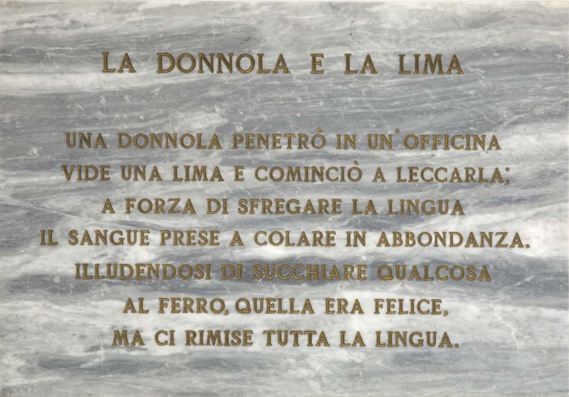 Le trenta opere esposte testimoniano l’eclettismo artistico di Salvo e ne delineano i tratti peculiari: la vivace ironia, il gusto per la provocazione e il gioco, tipici degli anni torinesi, fino allo smisurato amore per la pittura, che come lui stesso affermò “lo conquistò letteralmente”, accompagnandolo dal periodo dell’Arte Povera al concettualismo d’ispirazione americana fino agli ultimi anni di significativo ritorno al paesaggio e alla figura umana.